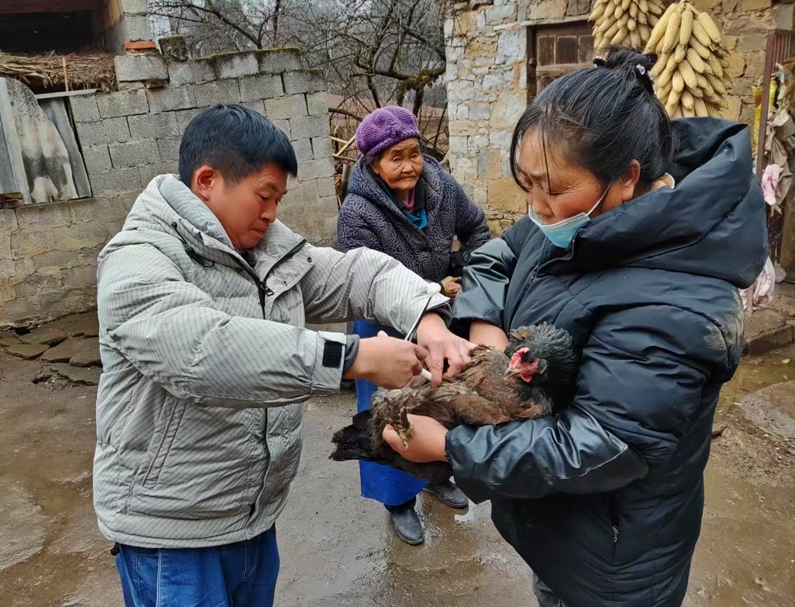 龙街乡秉持"预防为主,综合防控"的工作方针,组织乡畜牧站工作人员及村防疫员深入各村组,协助养殖户开展春季动物防疫,全面落实各项防控措施。工作中,畜牧站工作人员入户为猪、牛接种口蹄疫疫苗,为鸡接种禽流感疫苗,力求做到"应免尽免,无一遗漏",确保防疫质量和防疫密度,有效预防疫病的发生。