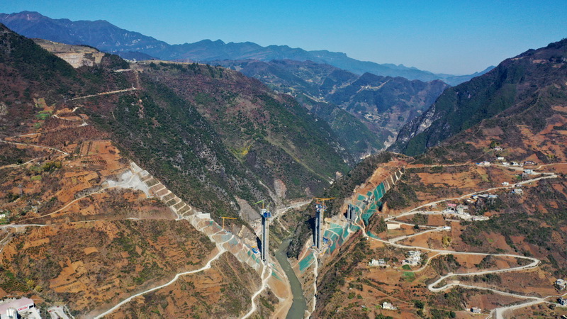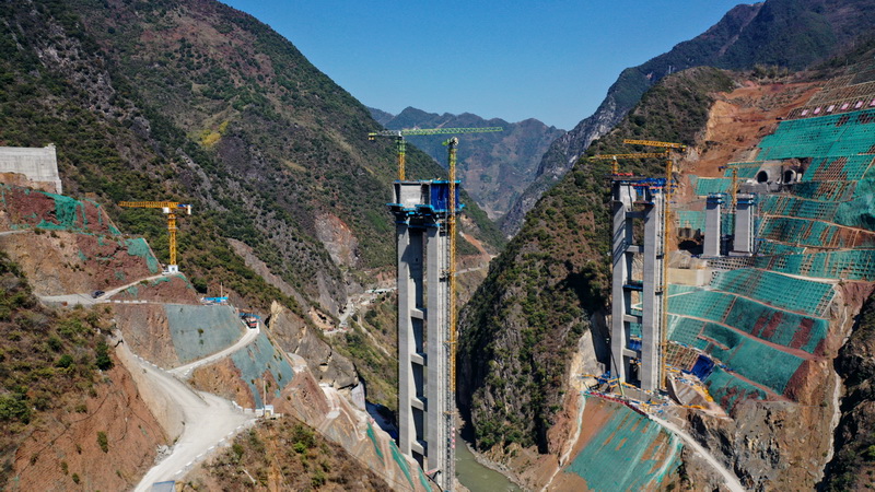 洛泽河特大桥是渝昆高铁的控制性工程之一,位于云南省昭通市彝良县境内,在县城下游2.5公里处,为左右线,双幅单线桥设计,主跨跨越洛泽河,重庆岸接小草坝隧道,昆明岸接炳辉隧道,桥长524.9米。最高墩设计为H型双柱式刚架墩,高度达150米,是我国在建的时速350公里高速铁路跨度最大、墩身最高的预应力混凝土桥梁。目前已经进入悬臂浇筑阶段,最大节段长度6米。