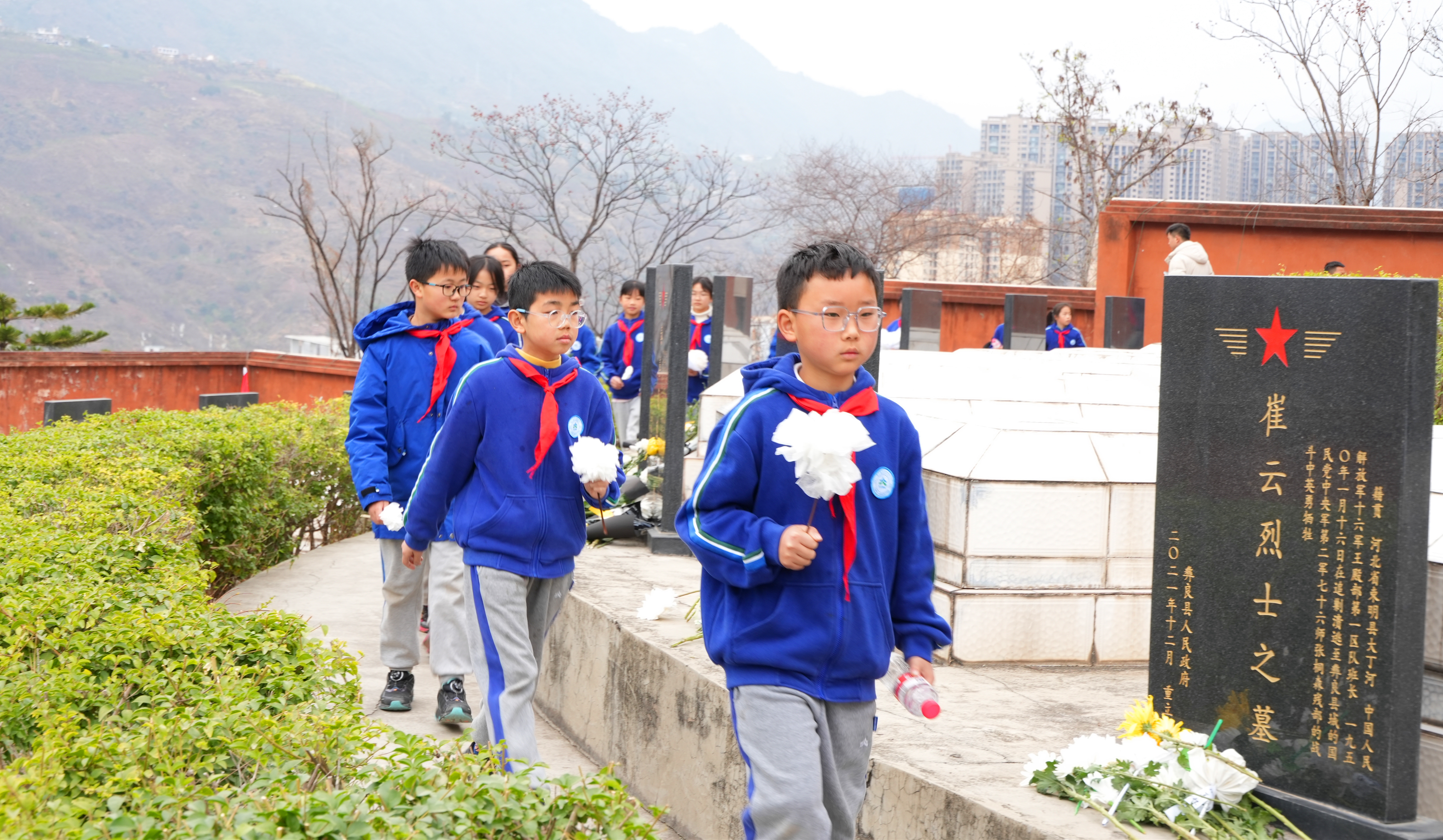 4月2日上午,来自县自然资源局、角奎社区、县示范小学、新城中学、彝良天立学校、中国人寿彝良分公司等单位的干部职工、中小学生先后到烈士陵园进行祭扫。