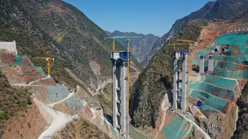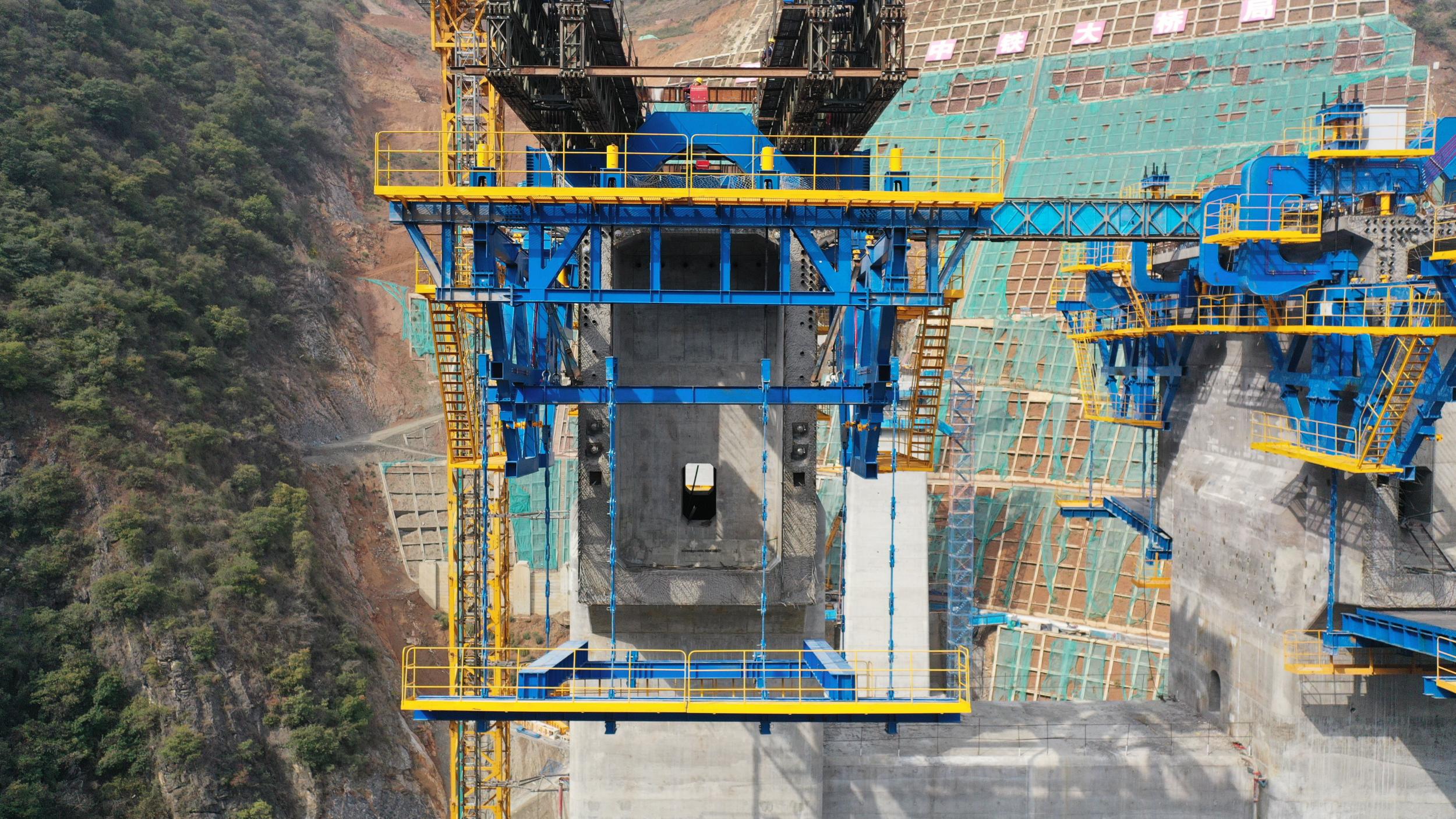 洛泽河特大桥是渝昆高铁的控制性工程之一,位于昭通市彝良县境内,在县城下游2.5公里处,为左右线,双幅单线桥设计,主跨跨越洛泽河,重庆岸接小草坝隧道,昆明岸接炳辉隧道,桥长524.9米。最高墩设计为H型双柱式刚架墩,高度达150米,是我国在建的时速350公里高速铁路跨度最大、墩身最高的预应力混凝土桥梁。目前已经进入悬臂浇筑阶段,最大节段长度6米。