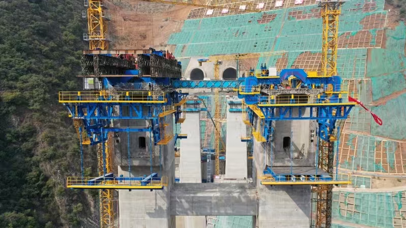 记者从中铁大桥局渝昆高铁洛泽河特大桥项目部获悉,继3月23日“虹鹰1号”智能悬臂筑桥机在渝昆高铁洛泽河特大桥2号桥墩完成首套吊装以后,3月28日,第二套“虹鹰1号”也完成了吊装工作,第三套、第四套将在4月上旬完成吊装并全部投入使用。“虹鹰1号”的 4套设备在渝昆高铁洛泽河特大桥的首次使用,标志着我国桥梁施工技术迈入智能化、高效化的新阶段。