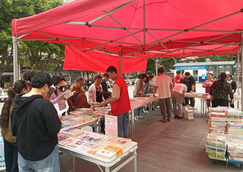 活动现场设置了精品图书展区,涵盖教育、儿童绘本、文学经典、健康养生等多种类别,志愿者向居民们介绍世界读书日的来源和意义,并鼓励大家借助全民阅读日这个特殊节点,享受阅读的乐趣。