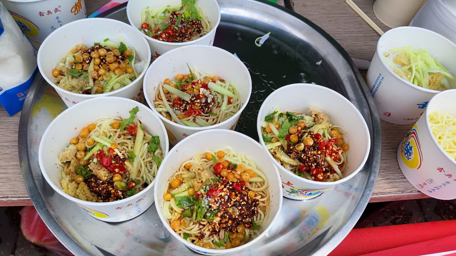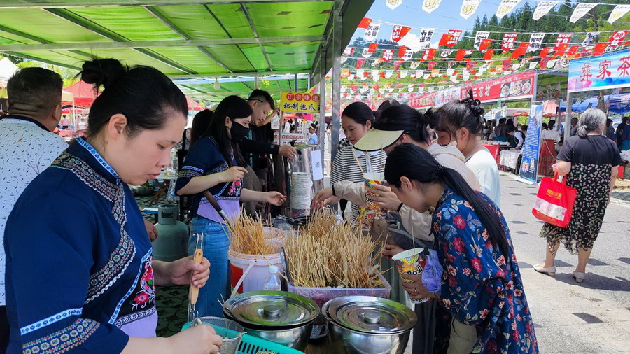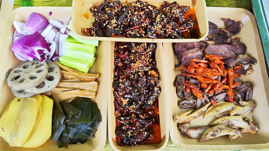 此外,活动全天还设有美食展销区,汇聚了各种特色美食,从外皮焦香酥脆、咬开满是肉汁的烤鸡,到麻辣鲜香、一口一串停不下来的钵钵鸡;从肉馅饱满、饼皮暄软的肉夹馍,到口感软糯清甜的桐子叶粑粑;再到越嚼越香的麻辣冷吃兔和卤香四溢、入味十足的各式卤菜……每一款都承载着浓郁的彝良烟火气,让游客无须奔波,就能一站式大快朵颐,沉浸式感受地道特色美食的独特魅力。