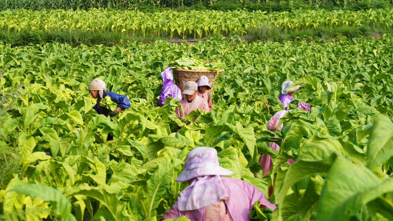 走进龙街乡,连片的烟田如绿色海洋。齐人高的烟株间,烟农穿梭其间,熟练地采摘着成熟的烟叶,肥大绿油的烟叶很快装满背篓。一捆捆新鲜的烟叶被装车运走,空气中弥漫着烟叶特有的清香。