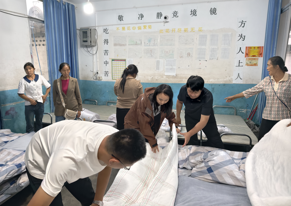 木坪村小学被设置为临时集中安置点,相关负责人带头腾空教室,对安置场所进行全方位清洁消杀,确保环境卫生安全;紧急调拨折叠床、被褥、帐篷、饮用水等应急物资,第一时间分发到群众手中,保障群众基本生活需求;针对部分群众因突发转移产生的焦虑情绪,村里专门安排志愿者进行陪伴交流,及时开展心理疏导,全力保障群众心理健康。这一系列及时、周密、温暖的举措,让转移群众在危难时刻感受到了家的温暖,更筑牢了生命安全的坚固防线。