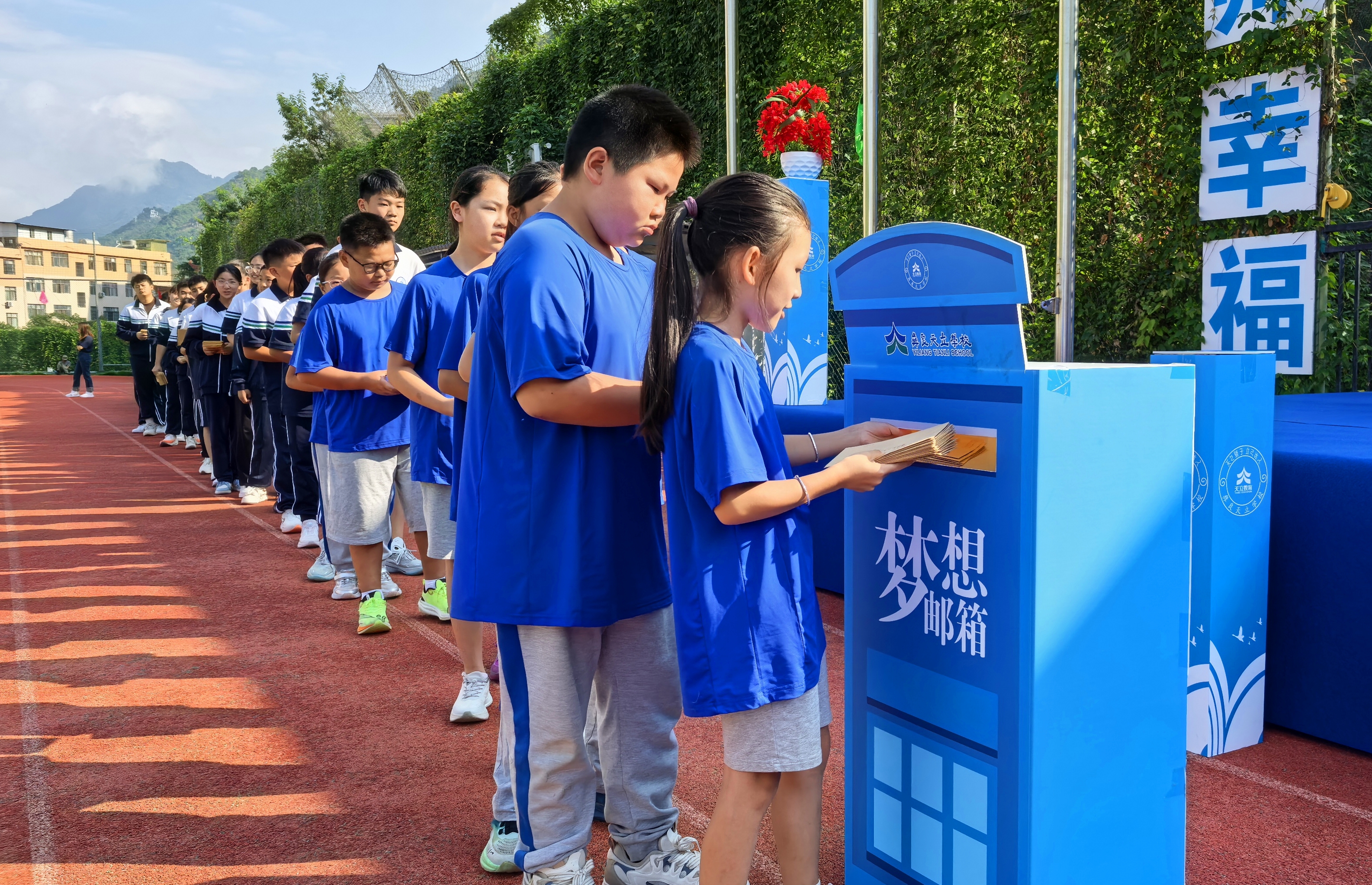 宣誓结束后,各班代表有序上前,将承载着全班同学新学期愿望与目标的“愿望卡”郑重投入现场设置的“愿望邮箱”。“考上理想的学校”“提升数学成绩”“学会一项新技能”……一张张卡片上,朴实而真诚的期许跃然纸上,凝聚着同学们对未来的美好憧憬。