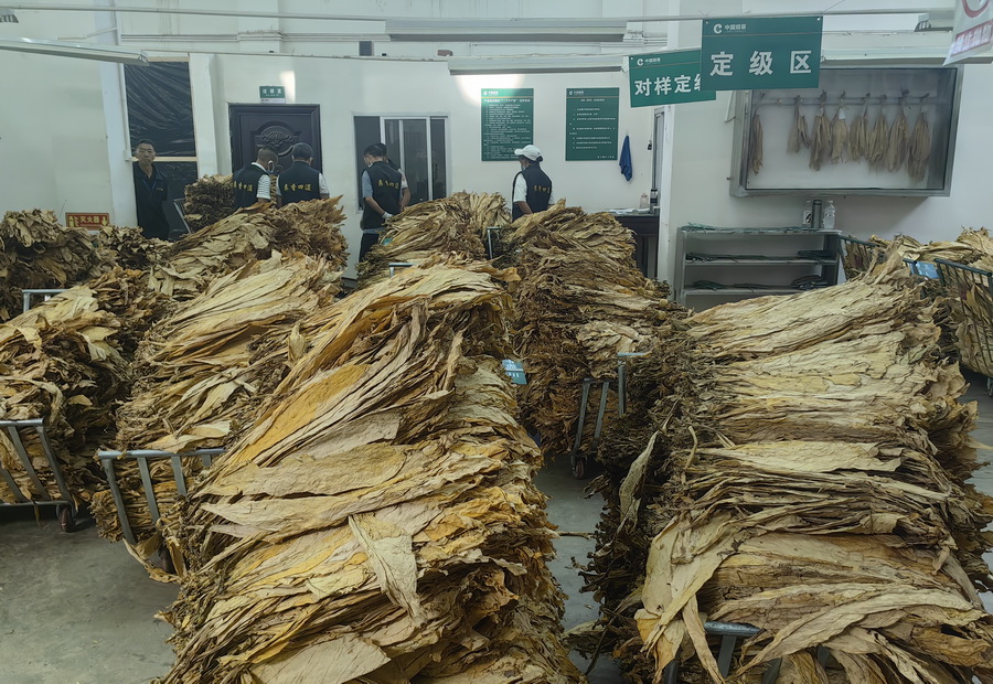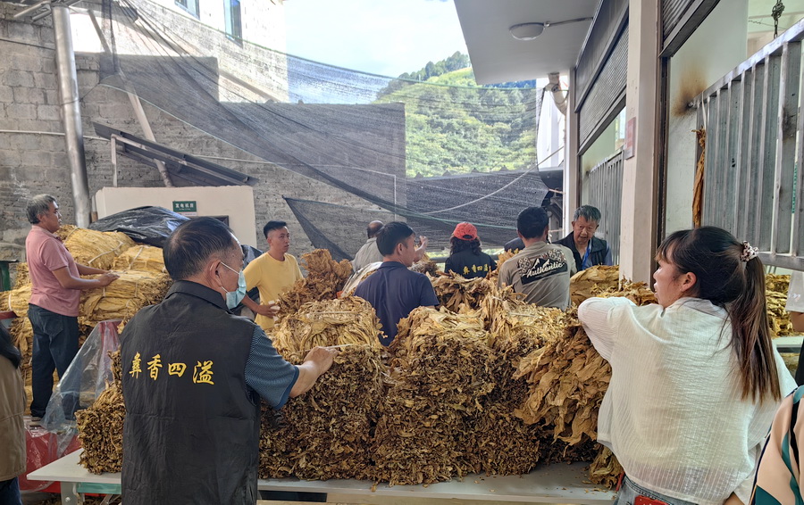 收购点内,工作人员正紧张有序地忙碌着。按照不同等级分类整齐堆放的烟叶散发出浓郁香气。工作人员严格执行收购标准,细致地进行分拣、评级、过磅、入库,各环节紧密衔接,现场秩序井然。烟叶站站长朱德华介绍:“自8月27日开秤以来,海子收购点已收购烟叶近14万公斤。为确保收购过程公平、公正、公开及安全有序,我们提前做好了充分部署,力争高效平稳完成收购任务。”