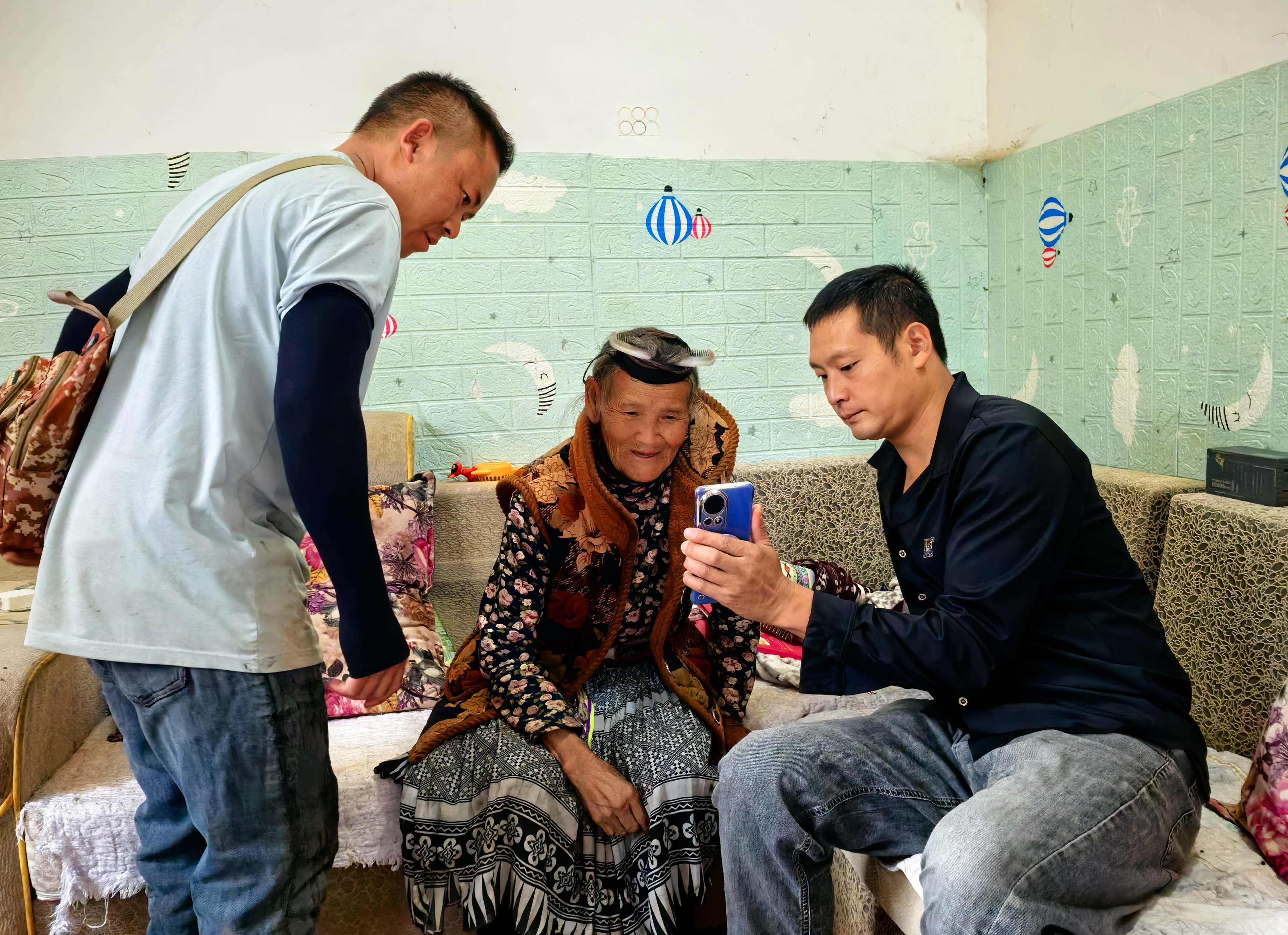 针对村内老年人占比高、部分村民不会操作智能手机、行动不便等实际情况,大坪村创新推出“三类认证通道”:在村委会活动室设立集中认证点,安排专人协助老年人使用手机APP完成人脸识别,对无智能机或操作困难的村民,工作人员用个人手机代为操作,实现“家门口办业务”;组建“上门服务小分队”,携带设备为高龄、重病、残疾、孤寡等特殊群体提供“面对面”认证,过程中不仅耐心讲解政策,还主动与老人唠家常、了解生活需求,让认证充满温情;对异地务工或随子女居住的村民,通过电话、微信远程指导家属,借助“电子社保卡”APP、微信小程序完成自助认证,有效解决异地认证难题。