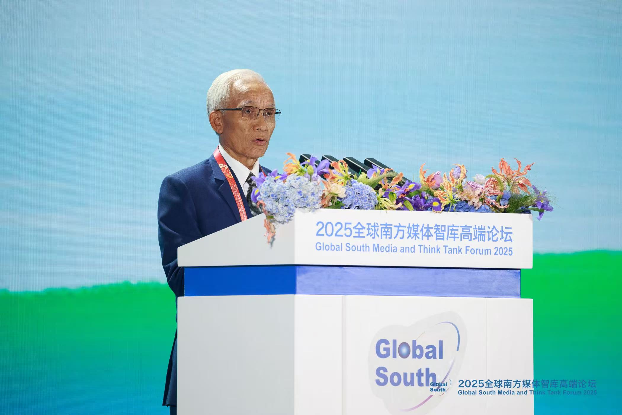 老挝人民革命党中央书记处书记、中宣部部长、中央理论委员会主席坎潘·培亚翁在2025全球南方媒体智库高端论坛开幕式上致辞