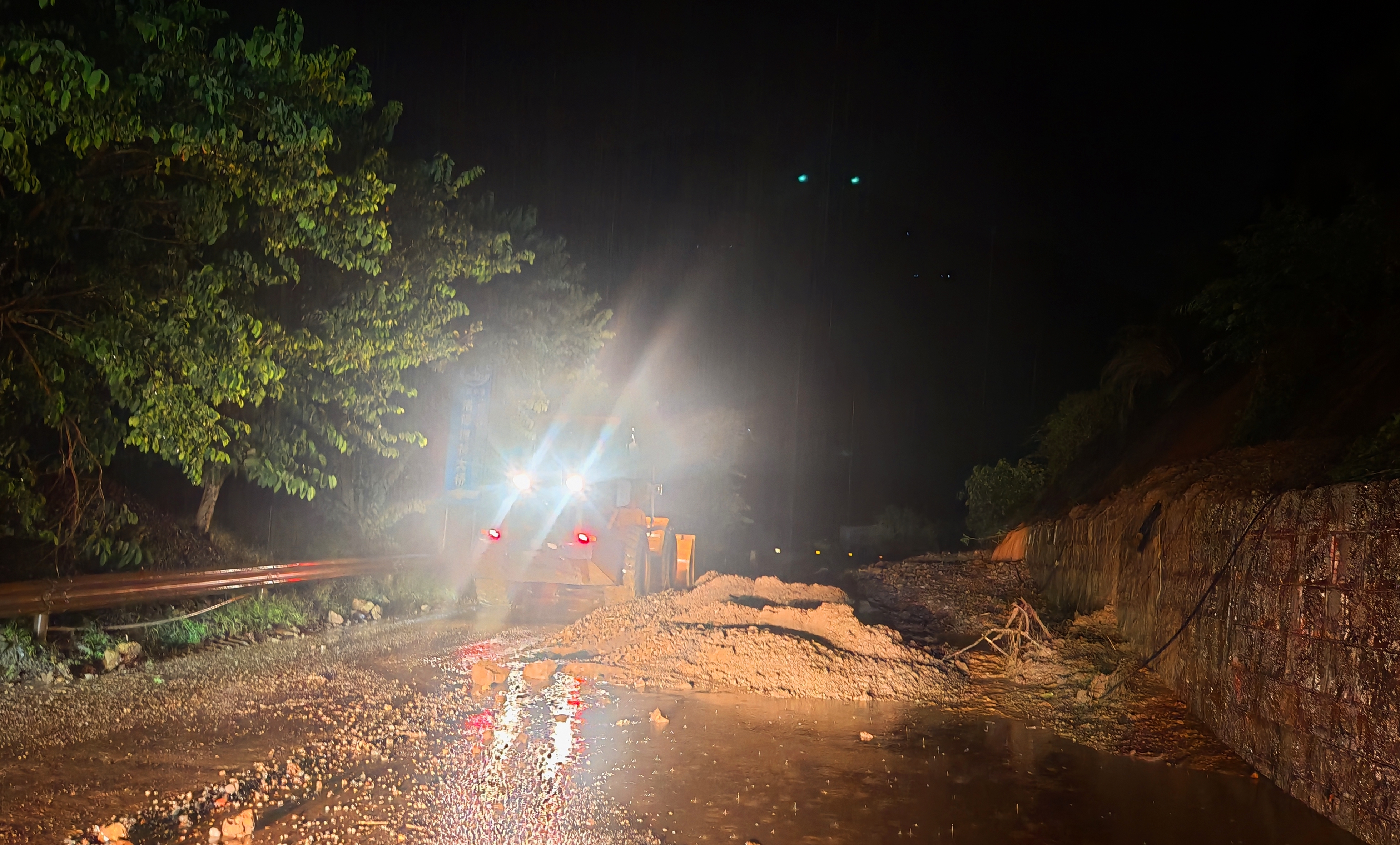 灾情就是命令,抢险刻不容缓。彝良公路分局第一时间启动应急预案,迅速组织应急保通队伍赶赴受灾现场,连夜开展抢险作业。抢险过程中,党员干部主动靠前指挥,技术人员冒雨勘察现场,科学制定抢修方案;抢险人员克服夜间作业视线差、山体不稳定、持续降雨等多重不利因素,采用“机械为主、人工为辅”的作业方式,高效清理塌方淤泥。同时,分局安排专人在现场疏导交通,严格遵循“先通后畅、安全第一”原则,确保抢通工作安全有序推进。