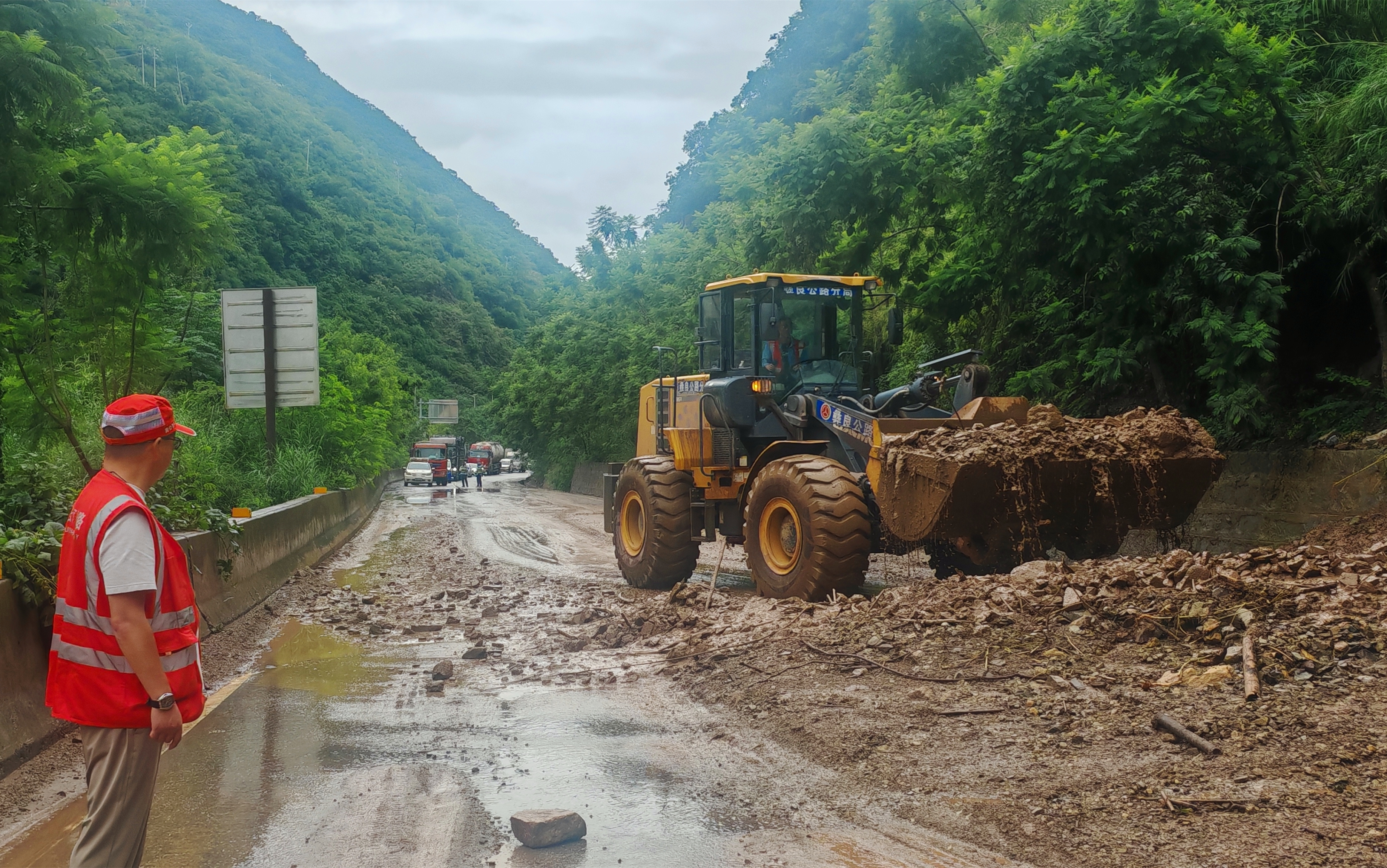 彝良公路分局连夜抢险 国省干线水毁路段恢复单向通行