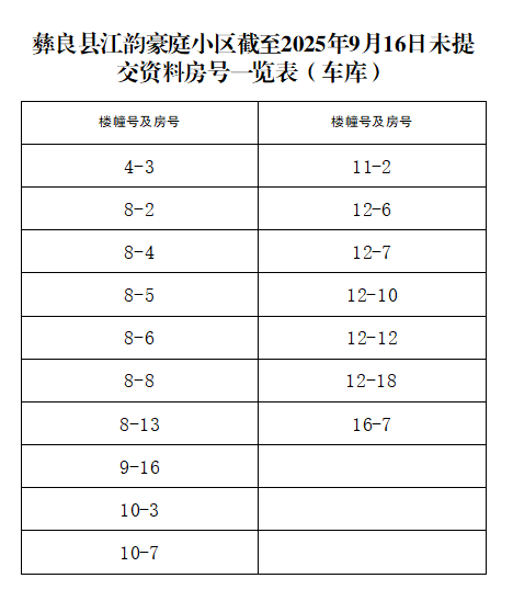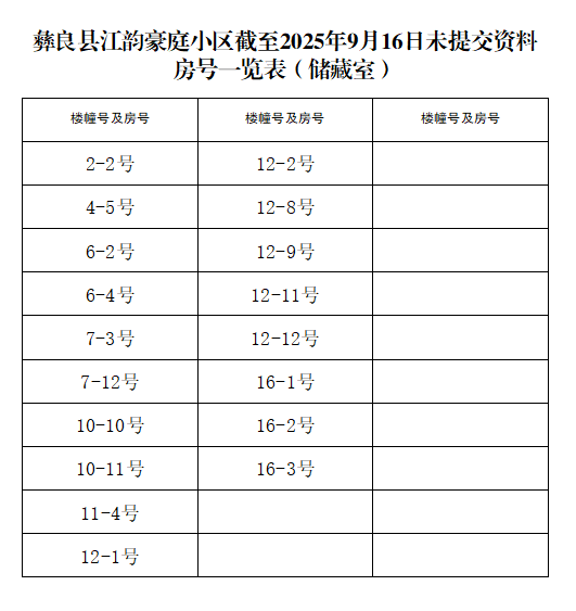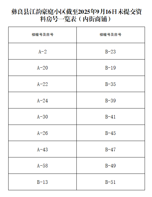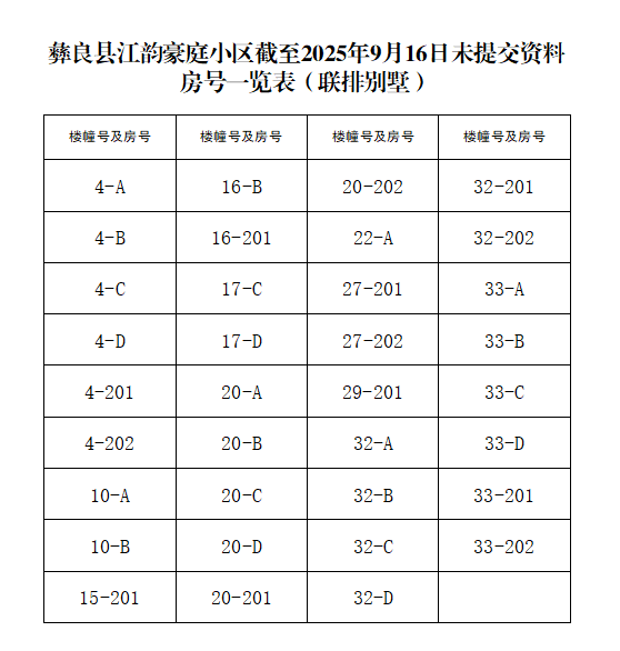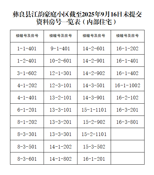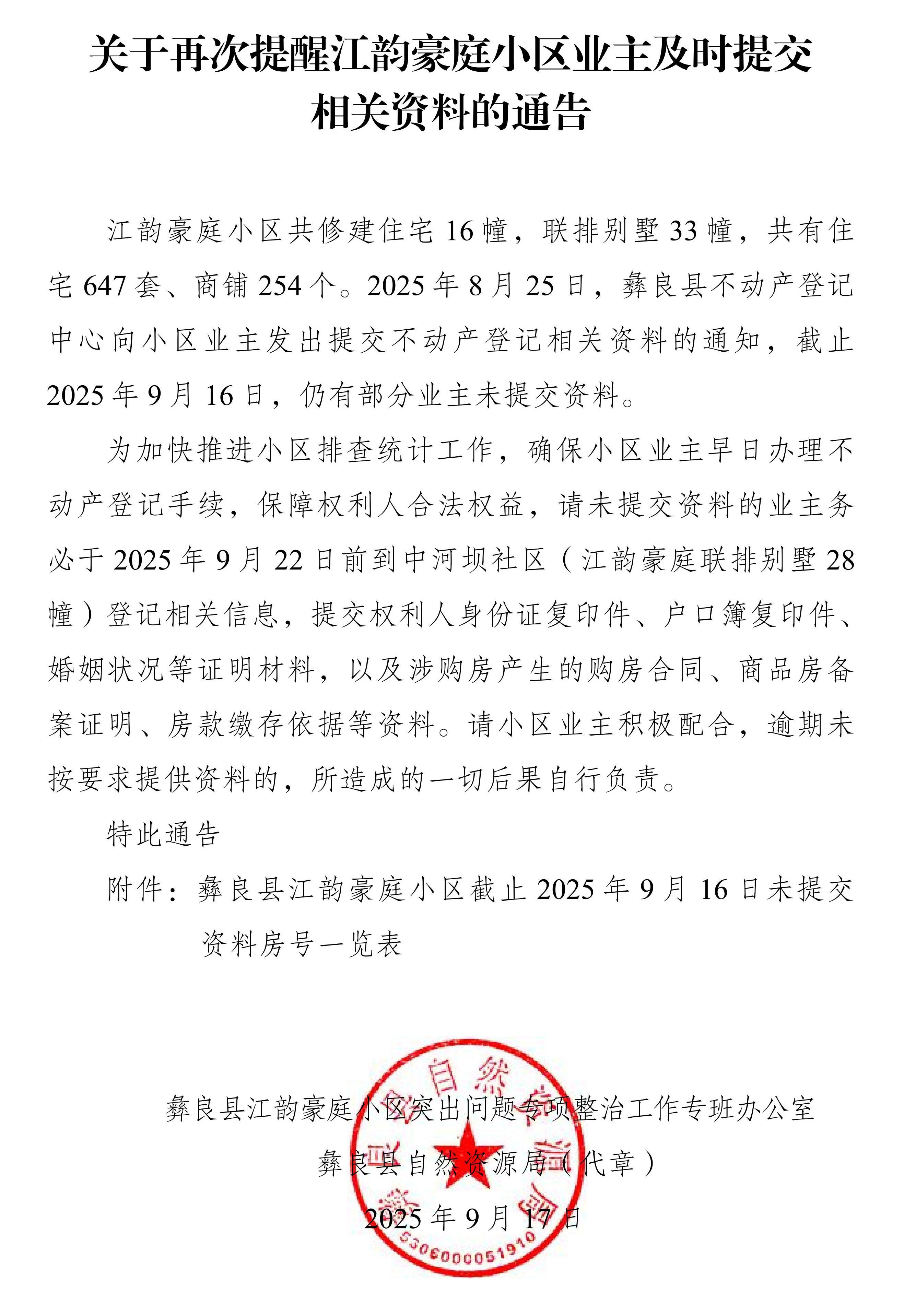 关于再次提醒江韵豪庭小区业主及时提交相关资料的通告