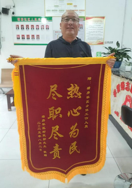 9月18日清晨,彝良县角奎街道塘房社区居民彭先生将一面写有“热心为民,尽职尽责”的锦旗送到社区,对工作人员成功调解一起赔偿纠纷表示衷心感谢。