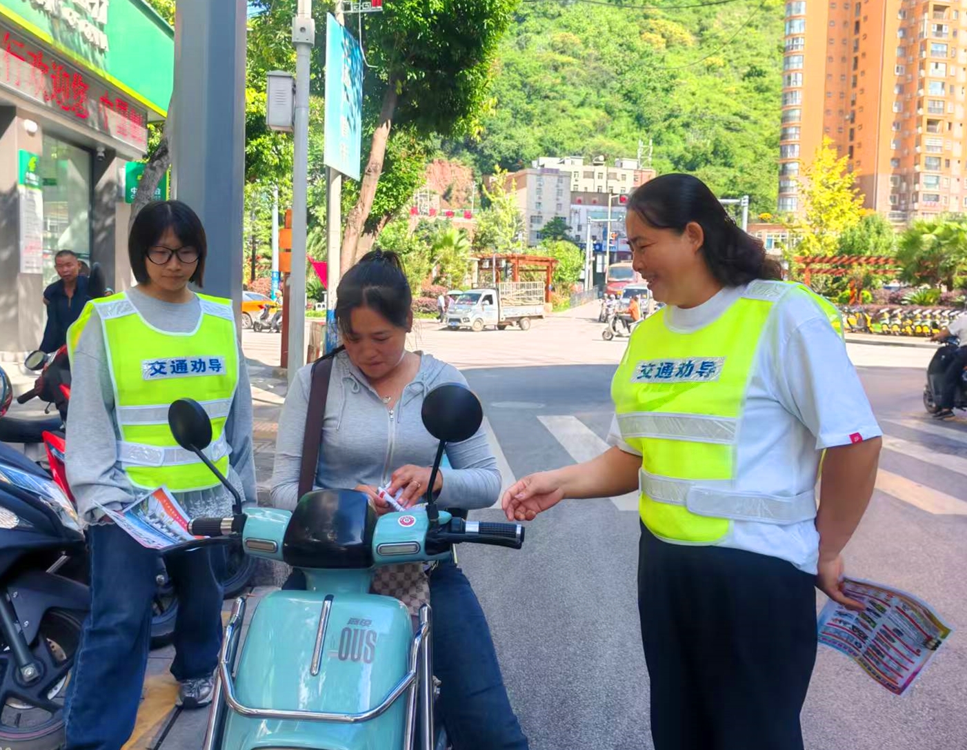 9月25日,彝良县角奎街道角奎社区围绕群众出行安全,组织志愿者在辖区主干道、公交站点、交通路口等人流集中区域设置宣传点,开展交通安全宣传活动。