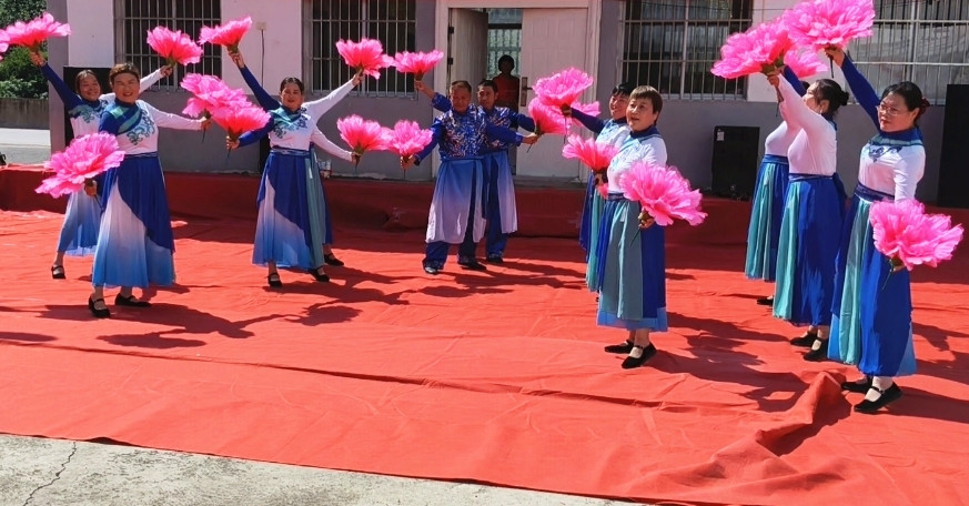 上午10时,活动在欢快的音乐中拉开帷幕。扇子舞《欢聚一堂》率先登场,演员们身着鲜艳服装,舞姿灵动,节奏昂扬,迅速点燃现场气氛,引来观众阵阵掌声。随后,《月之花语》以柔美婉约的舞姿表达细腻情感;社区儿童表演的《童心向党》充满朝气,展现对祖国的热爱;《在希望的田野上》则舞姿舒展,传递出对美好生活的向往。