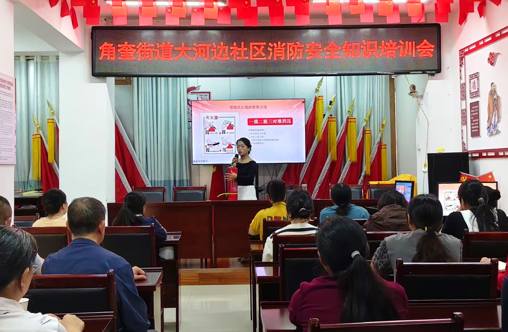 9月29日,彝良县角奎街道大河边社区组织居民开展消防安全知识培训,通过理论讲解与实操演练相结合的方式,增强居民防火意识和应急处理能力。