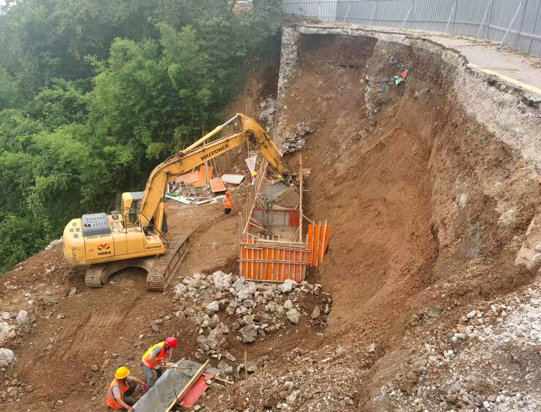 该路段曾于8月28日受持续强降雨影响,发生路基塌陷、路面开裂,导致交通中断,存在较大安全隐患。险情发生后,彝良公路分局立即启动应急响应,组织技术人员现场勘查,确认需紧急抢险。