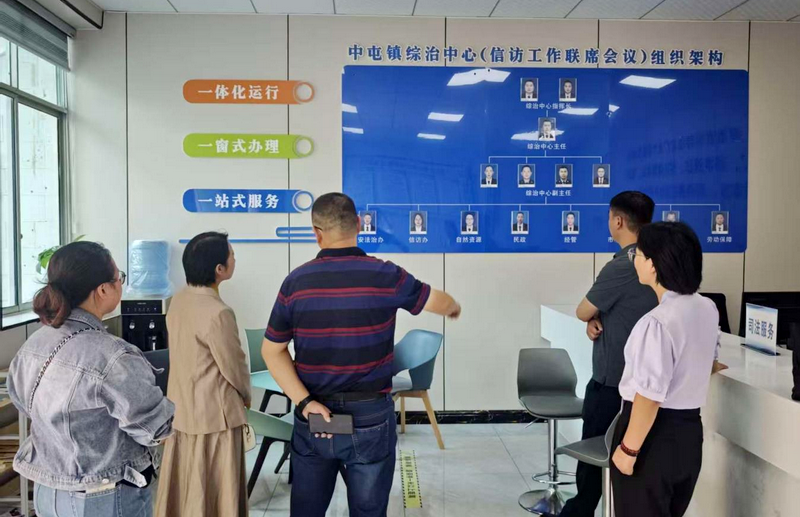 考察组实地走访中屯镇综治中心,通过听取介绍、现场观摩、交流互动等方式,详细了解其在阵地建设、功能布局、运行机制及信息化应用等方面的具体做法,重点学习了“双指挥长”责任体系、领导班子赶集日坐班接访、矛盾纠纷线索双向推送、逐级调解和联席会议等制度机制。