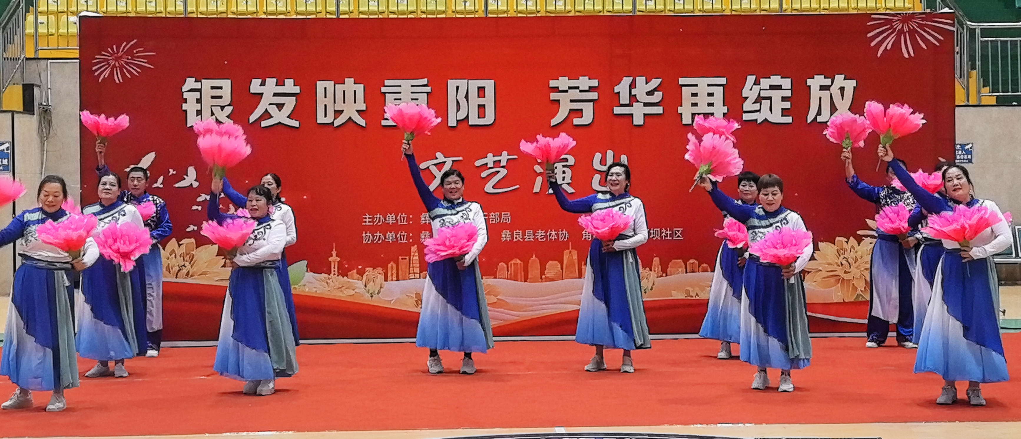 10月27日,由彝良县委老干部局主办,彝良县文旅局、彝良县老体协、角奎街道中河坝社区协办的“银发映重阳 芳华再绽放”文艺演出活动,在县体育馆举行,让辖区老年人在欢乐氛围中度过难忘的重阳佳节。