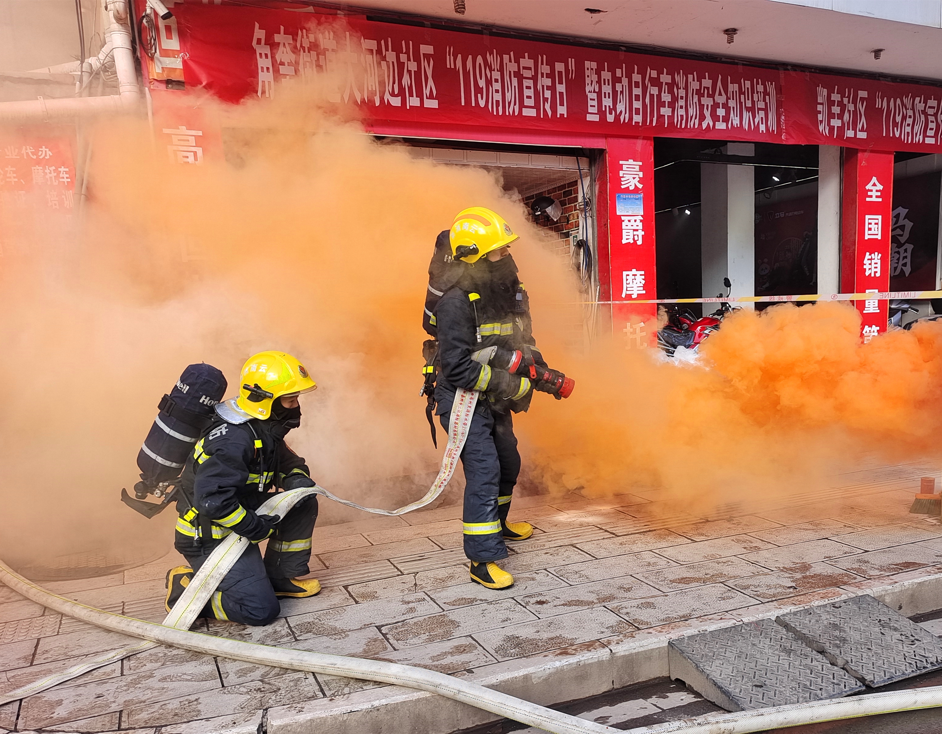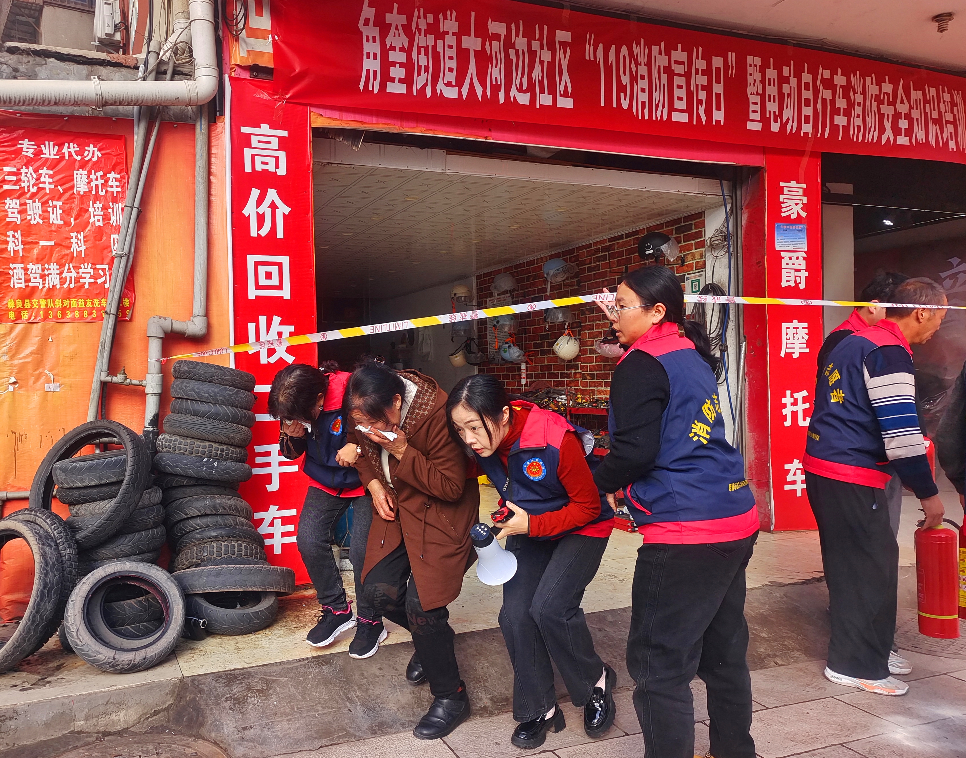 11月4日,彝良县角奎街道大河边社区与凯丰社区联合开展消防应急演练,模拟电动自行车商铺火灾场景,提升基层消防安全应急处置能力。