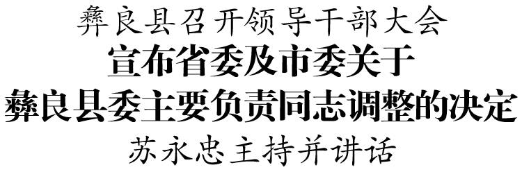 11月6日,彝良县召开领导干部大会,市委书记苏永忠出席会议并宣读省委、市委关于彝良县委主要负责同志调整的决定,对做好彝良县工作提出要求。