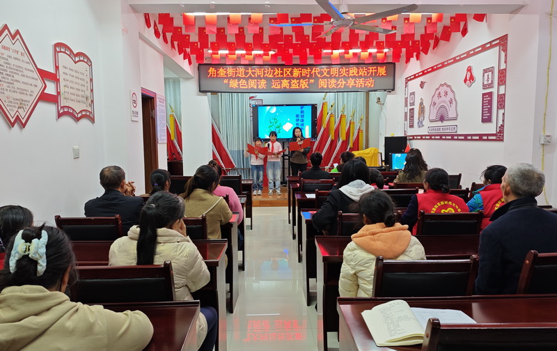 11月9日,彝良县角奎街道大河边社区新时代文明实践站举办“绿色阅读 远离盗版”阅读分享会,30余组亲子家庭和居民代表参与活动,共同倡导健康阅读习惯,抵制盗版书籍。