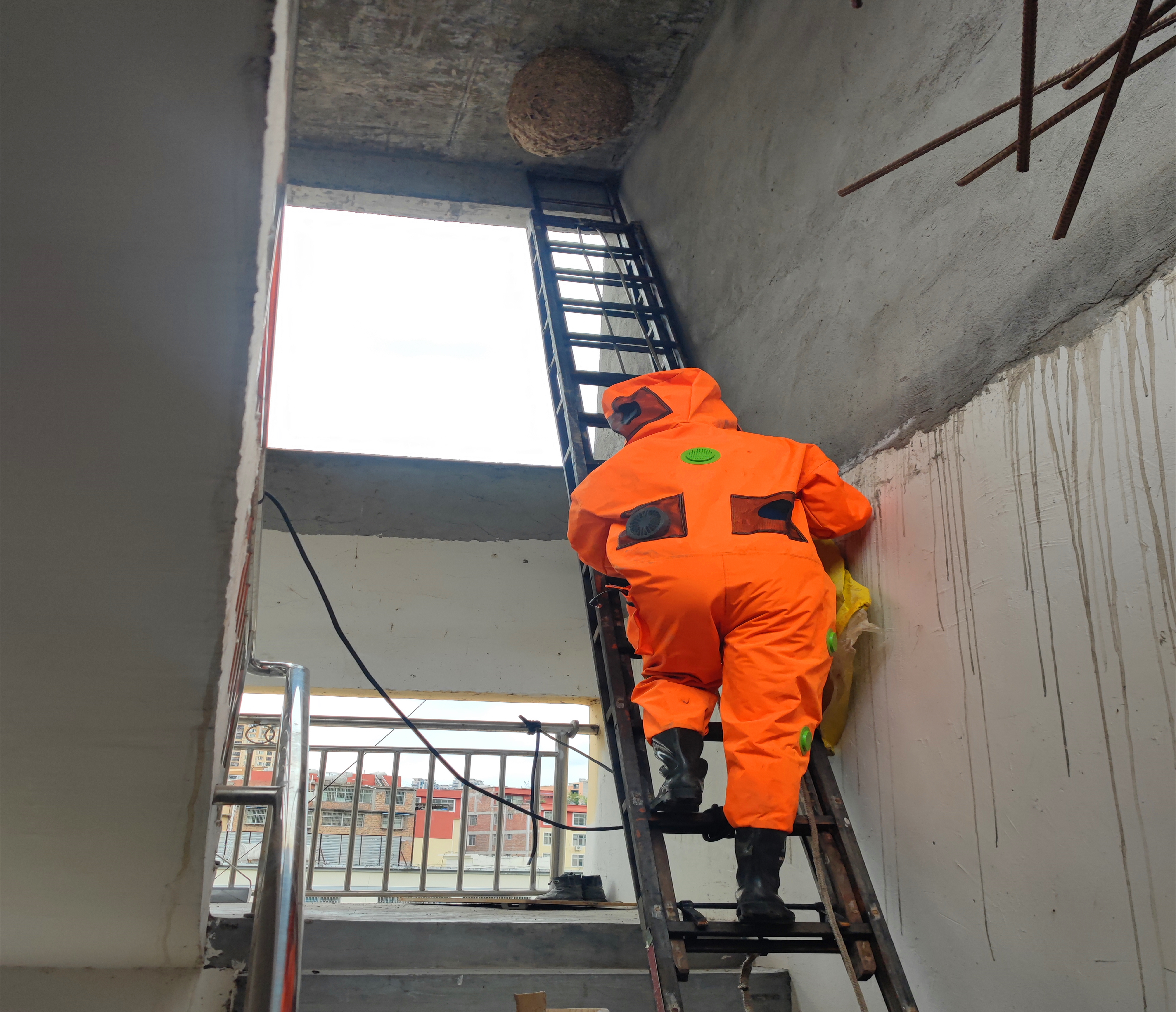 依托成熟的网格化管理体系,社区网格员化身“隐患侦察兵”,对辖区楼道、绿化带、外墙等角落开展“拉网式”排查。小到马蜂窝的尺寸、附着位置,大到周边是否有学校、老年活动区等重点区域,都被详细记录在案,确保隐患点位精准“画像”。锁定目标后,网格员第一时间逐户敲门提醒居民关闭门窗,在现场拉起安全警戒带,耐心疏导围观群众,为后续作业筑牢安全防线。