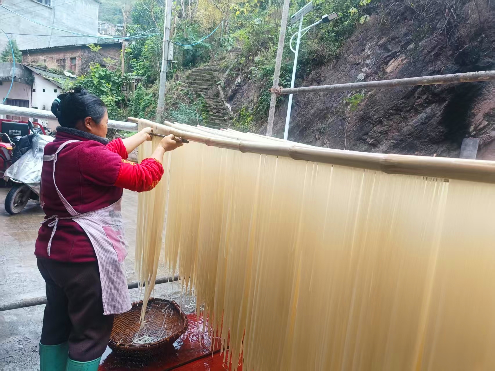 初冬时节,寒意渐浓。但,彝良县洛旺乡云丰村的红薯粉条加工坊里却暖意融融、一派繁忙。一排排晶莹剔透的粉条高挂下垂,在阳光下泛着温润光泽,宛如一串串“银丝”,这既是传统手艺的结晶,更是当地村民增收致富的“金丝”,让乡村振兴的根基在火热的产业发展中愈发牢固。