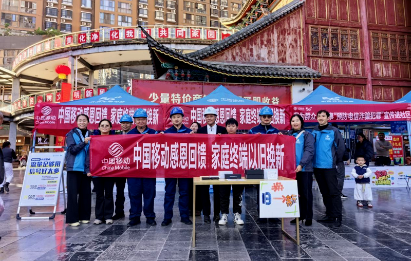 为深入践行“我为群众办实事”服务宗旨,切实提升社区居民的数字生活品质与安全防范意识。11月27日,中国移动通信集团云南有限公司彝良分公司(以下简称:彝良移动)在彝良县财富中心广场举办了一场主题鲜明、内容丰富的惠民服务活动。活动聚焦“中国移动感恩回馈,家庭终端以旧换新”与“我为群众办实事‘预防电信诈骗犯罪’宣传进社区”两大核心内容,吸引了众多群众参与,现场气氛热烈。