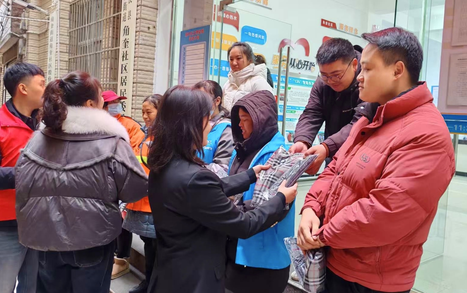 活动中,社区工作人员将精心准备的手套、围巾等暖冬礼物逐一送到在场的外卖骑手、环卫工作者手中。厚实的手套、温暖的围巾,不仅抵御了冬日的严寒,更让新就业群体感受到了党组织的关怀与社区的温情,不少人当场拿出手机拍照,分享这份暖心瞬间。