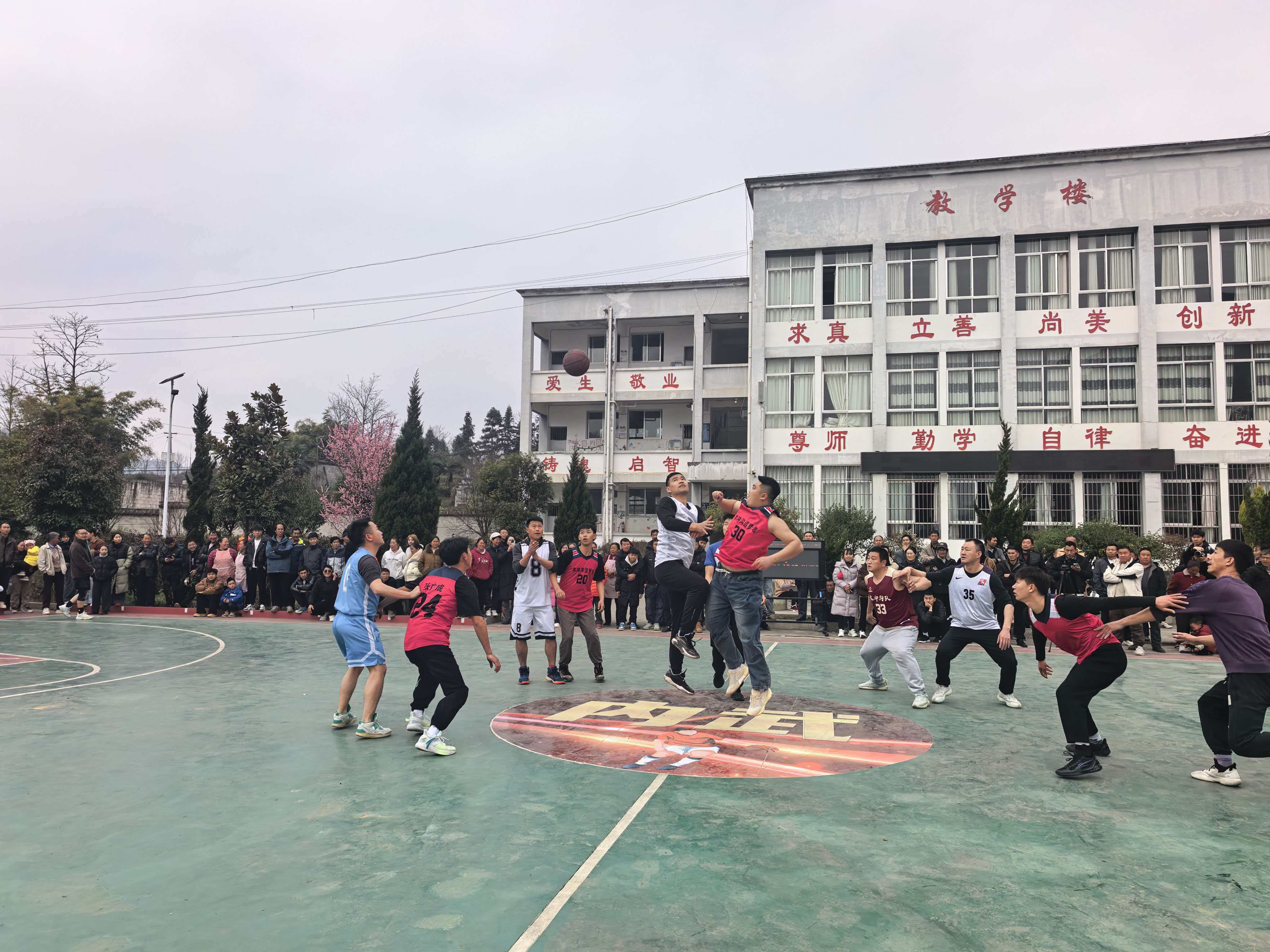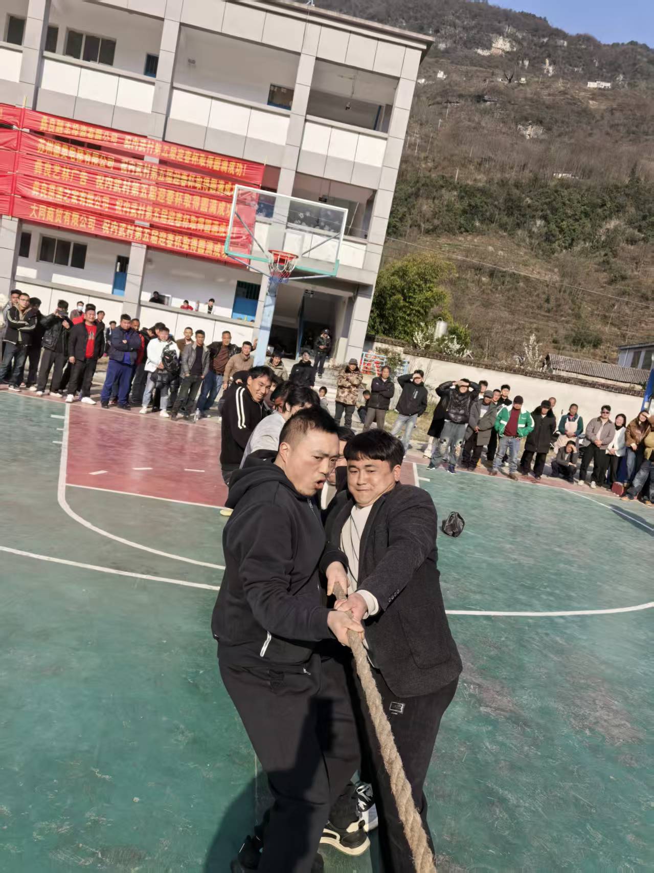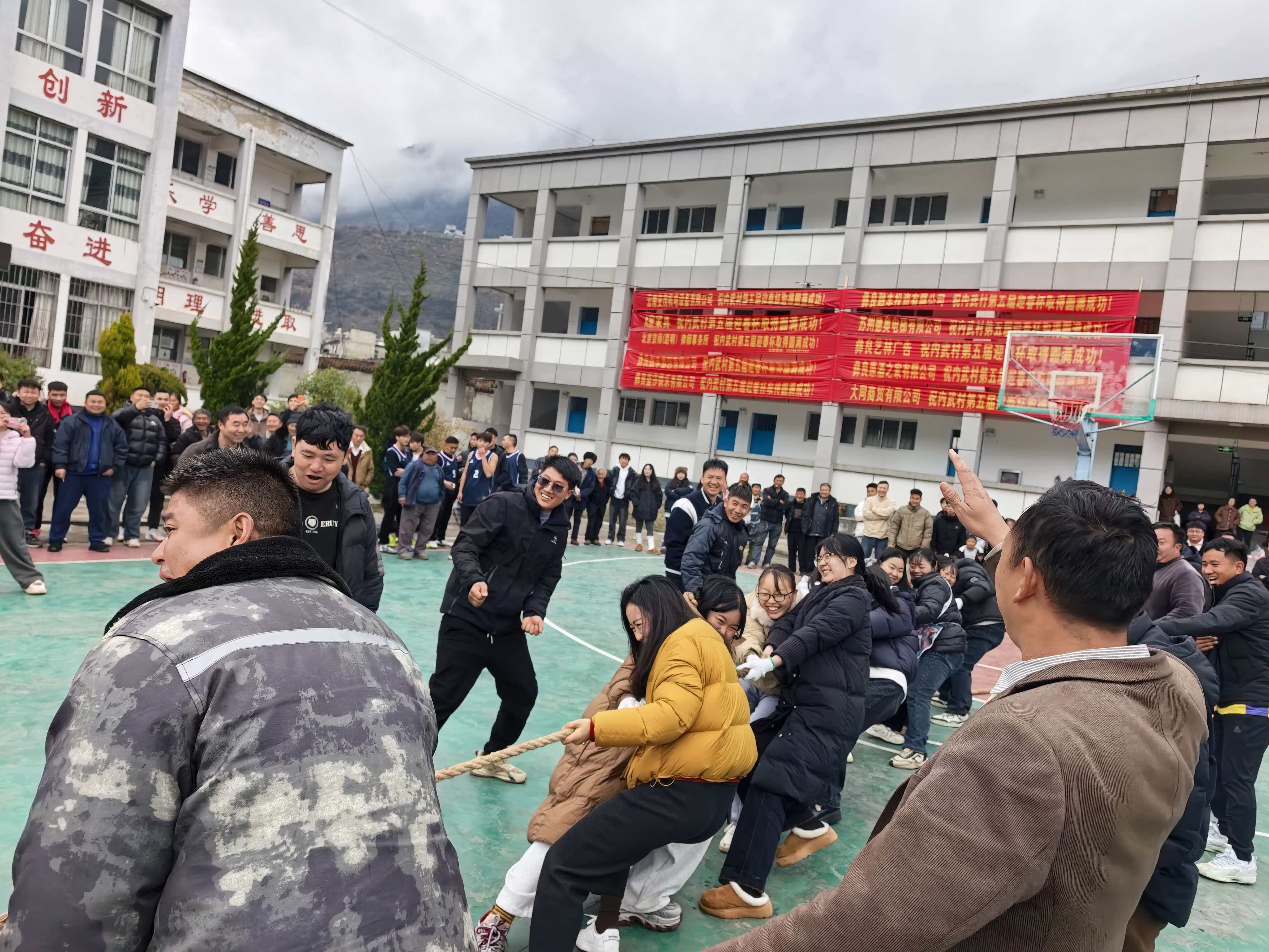 赛场下,男女老少驻足观赛、呐喊助威,有人为篮球健儿喝彩,有人为拔河队加油,有人为文艺表演者鼓掌,不同赛场同样热闹,浓浓的年味与运动活力、文艺气息在内武小学校园尽情流淌。