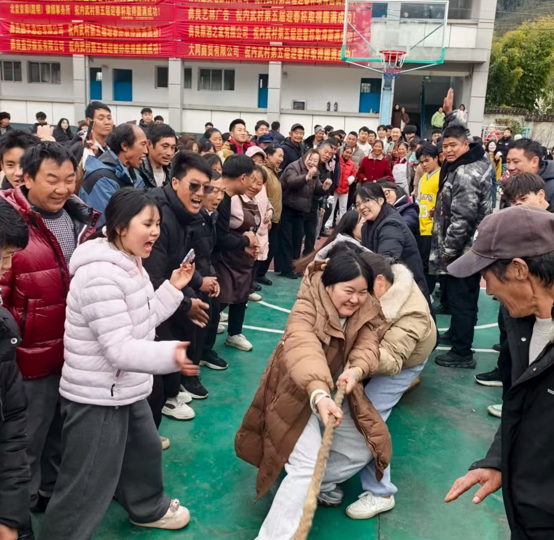 拔河赛场更是热闹非凡,随着一声哨响,参赛队员紧握长绳、重心下沉、齐心发力,红绸带左右僵持、悬念拉满。三天赛程里,18场比拼场场激烈、扣人心弦。“一二、加油!一二、使劲!”领队村民呐喊助威,大家铆足干劲、同心协力,用团结诠释邻里情深,呐喊声、欢笑声与新春喜气交织成最美的风景。