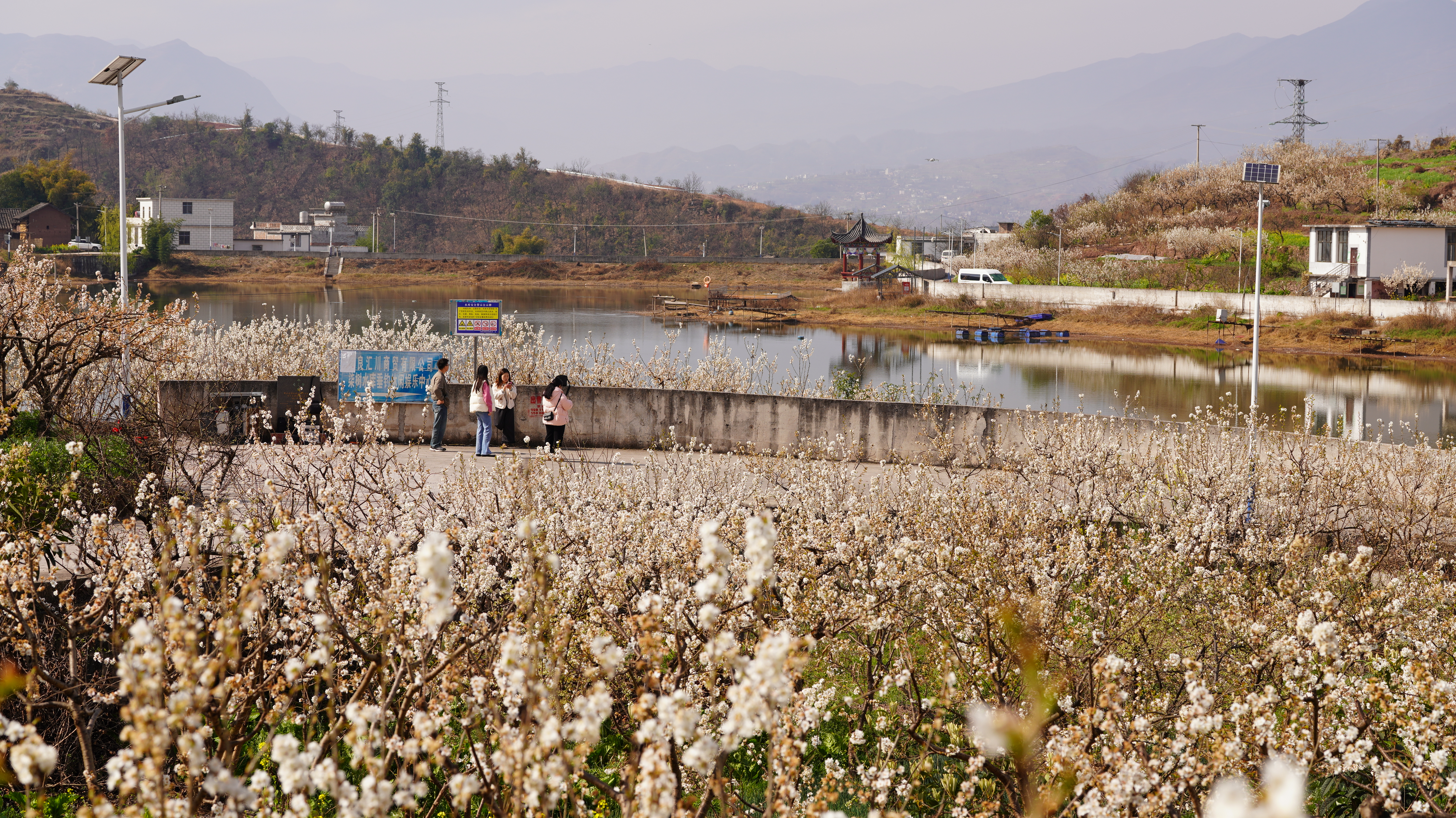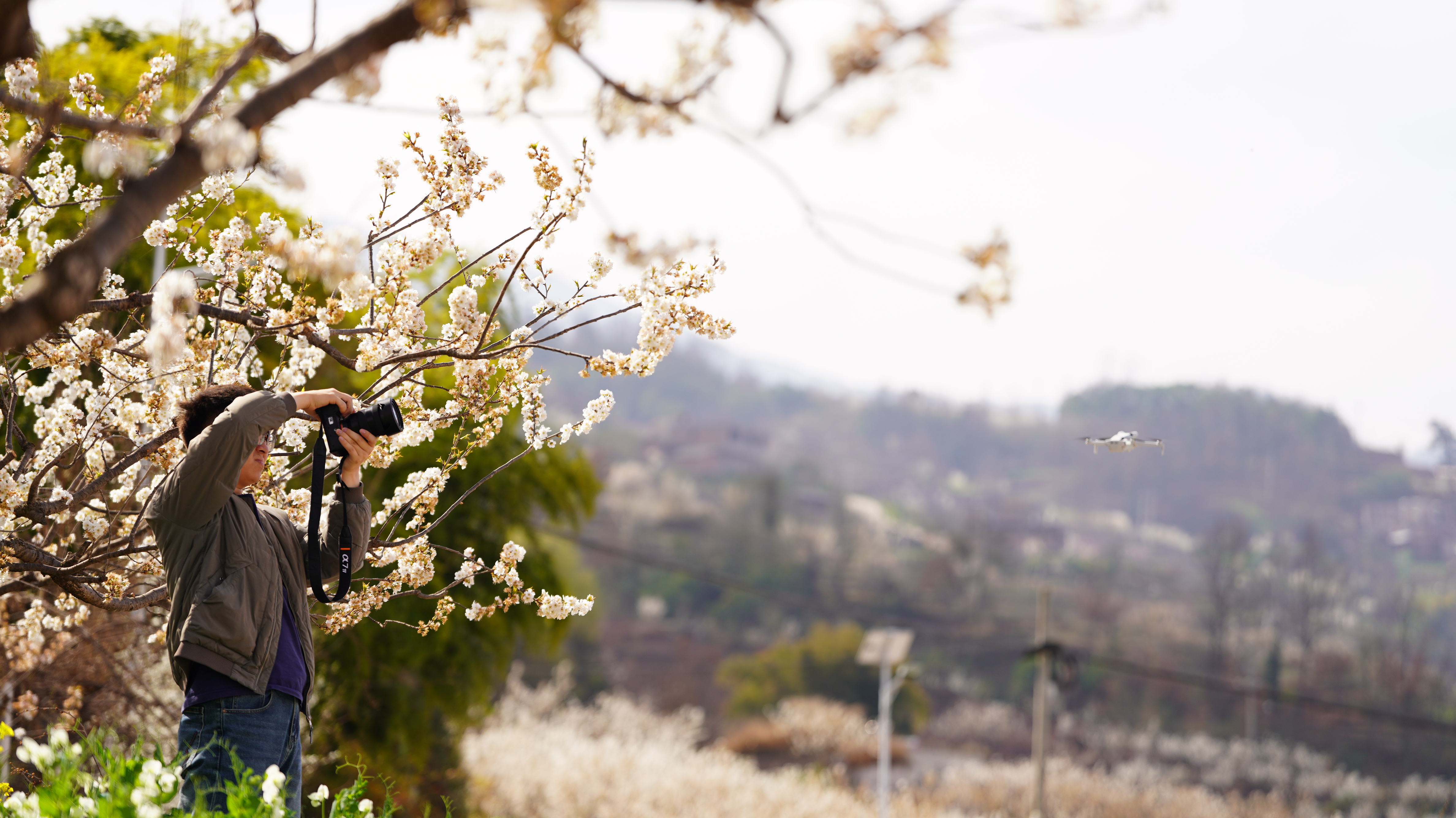 初春时节,彝良县境内近万亩樱桃花迎春盛放,漫山遍野的花朵如云似雪,将村庄装点成诗意田园,吸引游客踏青赏花。