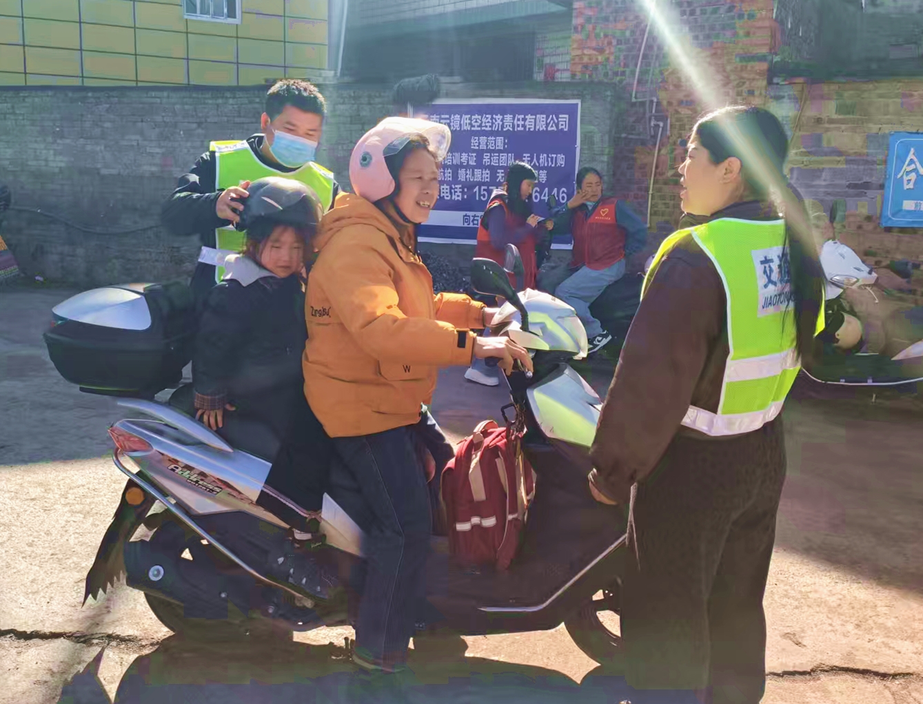 行动中,劝导人员在辖区重点路口及校园周边路段定点值守,对驾乘电动车不戴头盔、三轮车违规载人等行为进行现场劝导、纠正。同时,工作人员面向学生、家长及过往群众开展交通安全宣传,讲解安全出行注意事项,普及交通法律法规,引导群众自觉摒弃交通陋习,遵守交通规则。