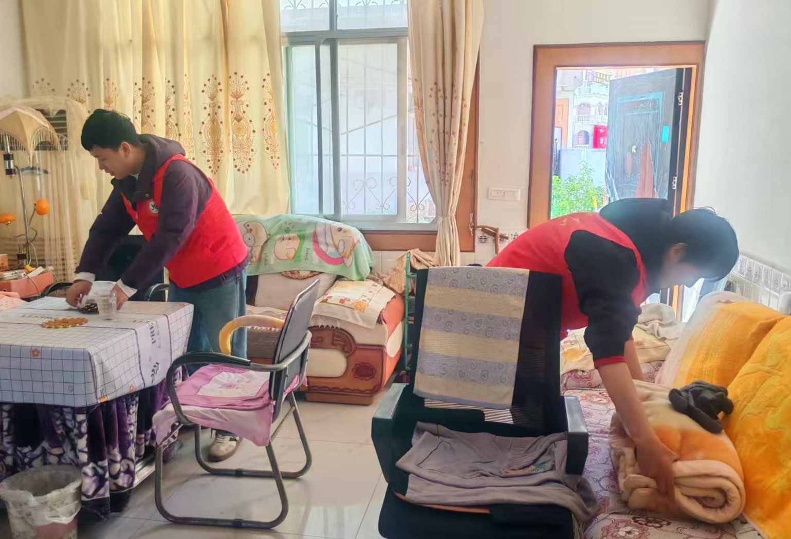 活动中,党员志愿者携带工具入户走访,为老年居民清理卫生死角、整理居家环境,同步排查用火用电安全隐患。志愿者与老年人拉家常、问需求、解忧愁,在贴心服务中拉近党群距离,把关怀送到群众心坎上。