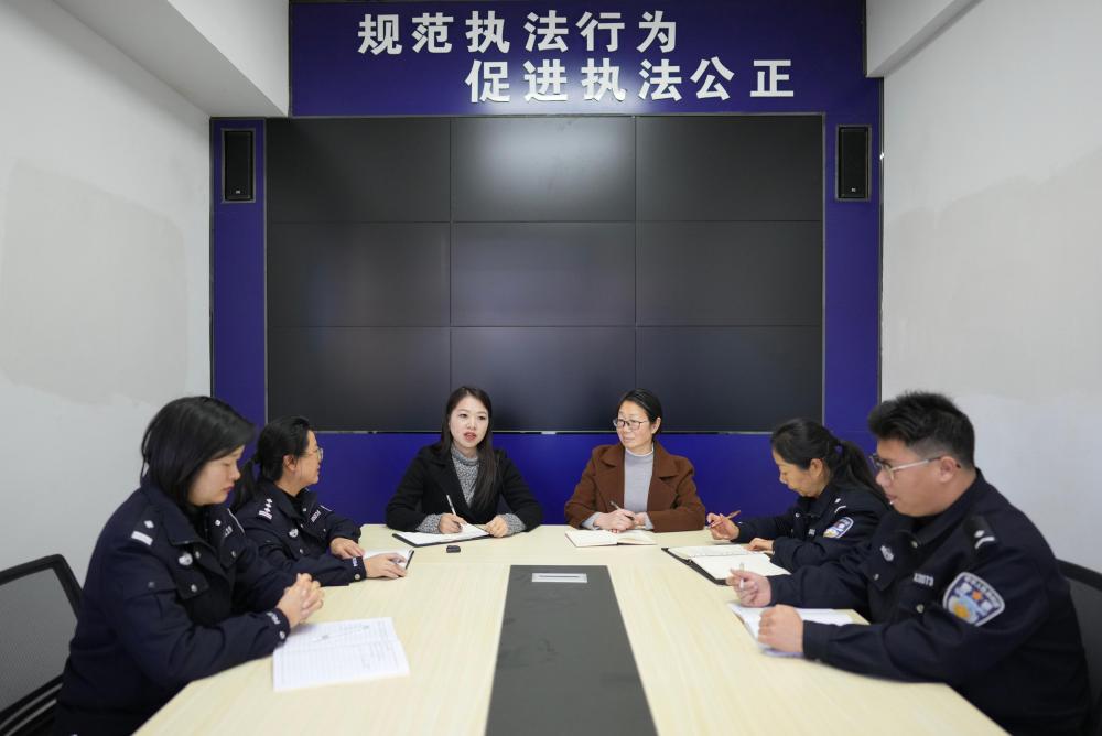 2月10日,金瑞瑞(左三)在云南省牟定县公安局调研青少年心理健康和违法犯罪预防问题。