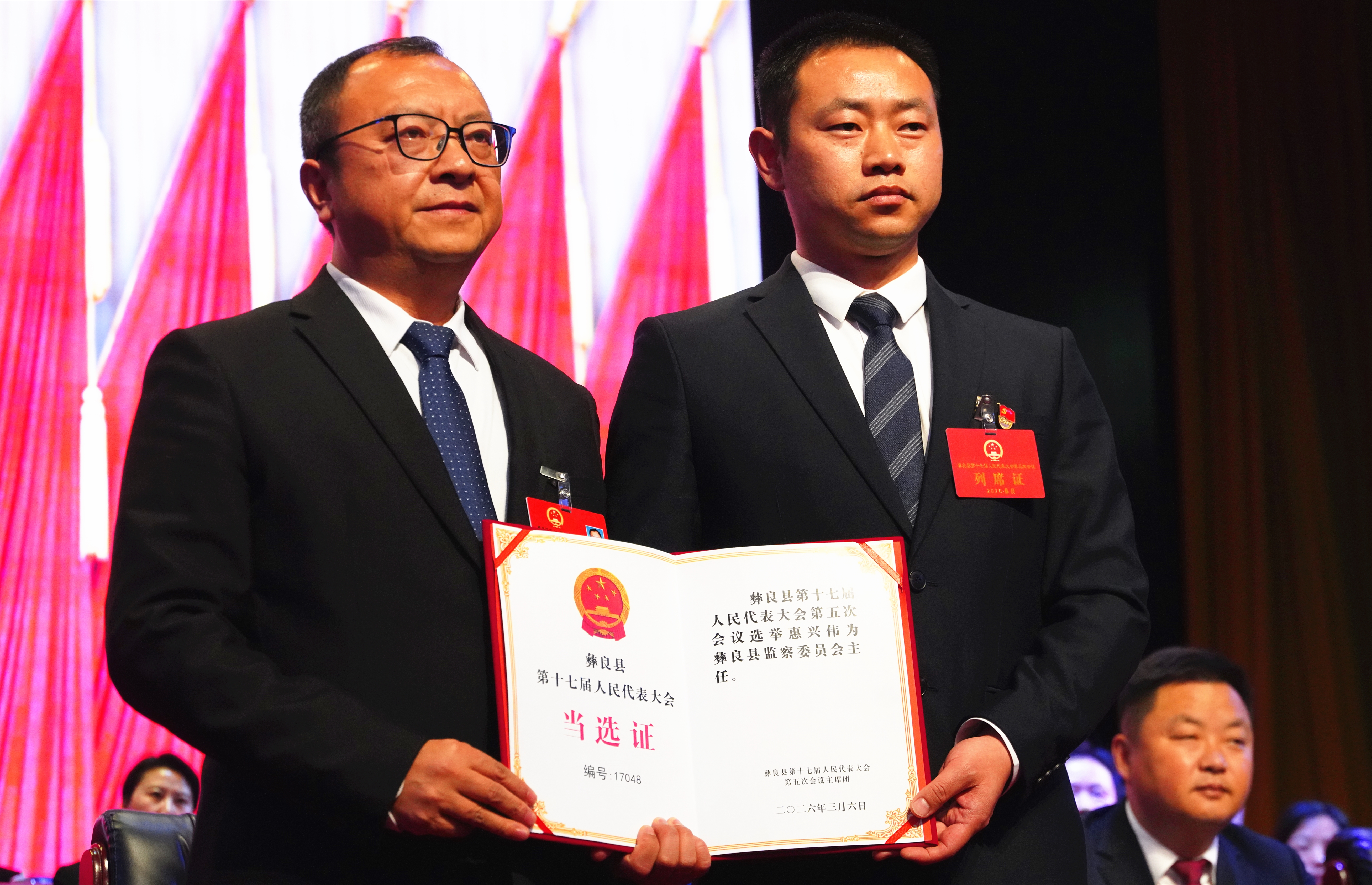 县人大常委会主任高正坤为惠兴伟颁发当选证书。