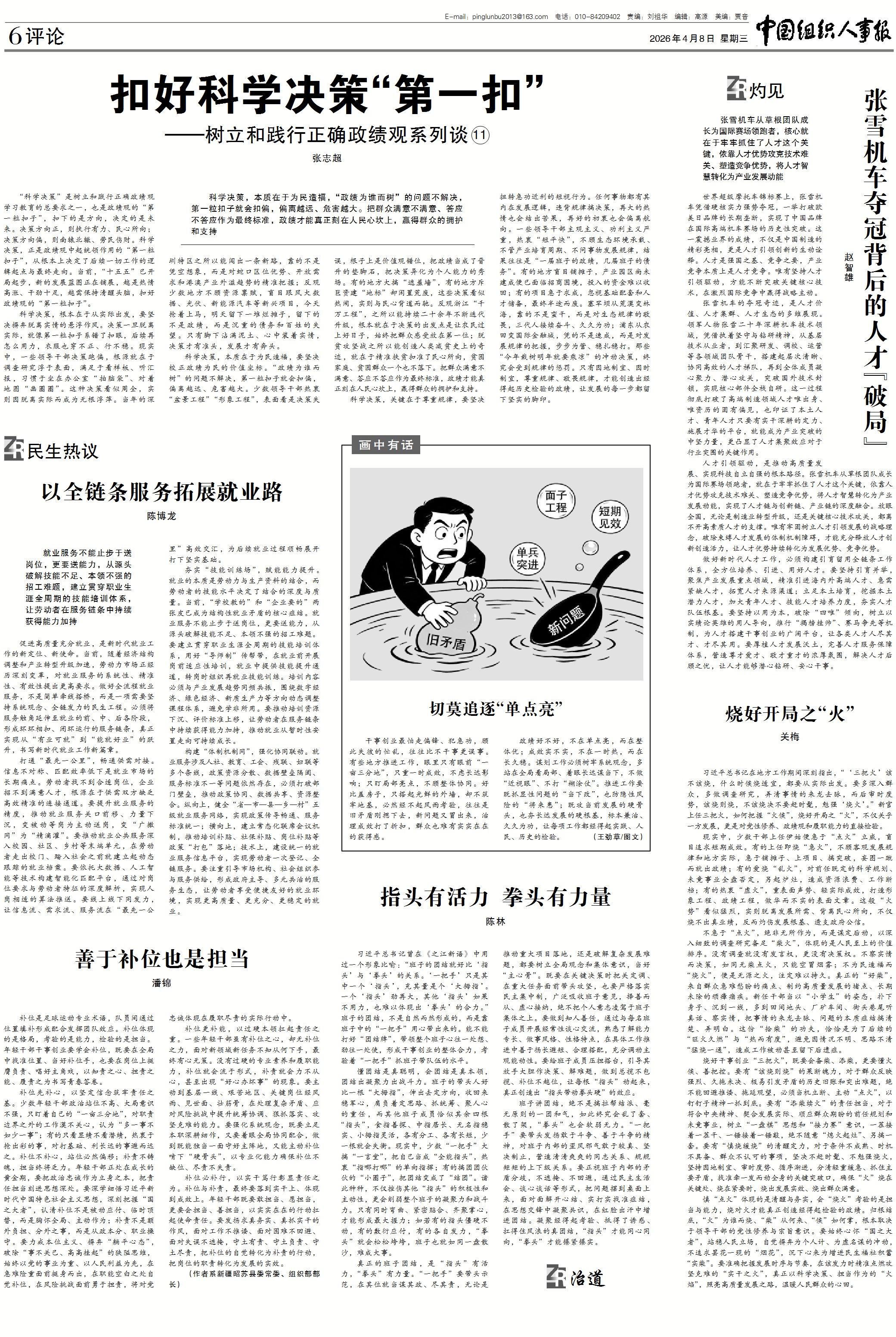 不急于“点火”,绝非无所作为,而是谋定后动,以深入细致的调查研究备足“柴火”,体现的是人民至上的价值排序。没有调查就没有发言权,更没有决策权。不察实情而决策,如同无柴点火,只能空冒烟雾;不为民造福而“烧火”,便是无源之火,注定难以持久。真正的“好柴”,来自群众急难愁盼的痛点、制约高质量发展的堵点、长期未除的顽瘴痼疾。新任干部当以“小学生”的姿态,扑下身子、沉到一线,多到田间地头、厂矿车间、街头巷尾听真话、察实情,把事情的来龙去脉、问题的本质症结搞清楚、弄明白。这份“拾柴”的功夫,恰恰是为了后续的“旺火久燃”与“热而有度”,避免因情况不明、思路不清“猛烧一通”,造成工作被动甚至留下后遗症。