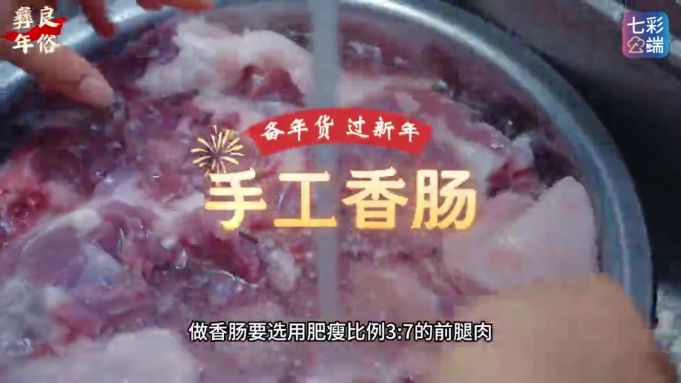 在昭通彝良,亲手制作腊味香肠,是迎接春节必不可少的仪式。精选肥瘦相宜的新鲜猪肉,均匀拌入精心调配的香料,让每一块肉都裹满浓郁的香气,再将其细心灌入肠衣,用棉线分段扎紧,悬挂晾晒,在时光中慢慢酝酿风味。这不仅是一道美食,更是饱含家的温暖与新年期待的象征。