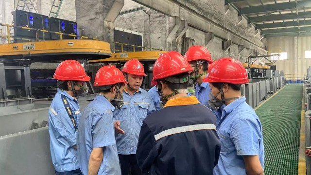 在同事们的眼中,黄道军就像是一位“急救队长”。2019年,公司高频细筛投用初期,渣浆泵“喘气”导致分级效果不理想,黄道军在现场连续驻守三天三夜,成功解决了这一技术难题。在设备升级时,球磨机电机轴瓦多次突发移位,他带领团队在闷热的厂房里持续奋战,有效降低了停机损失。更令人感动的是,2011年,在他儿子出生的当天,他接到球磨机故障的通知后,毅然离开了医院赶赴现场,连续工作了30多个小时,确保了生产线的平稳运行。