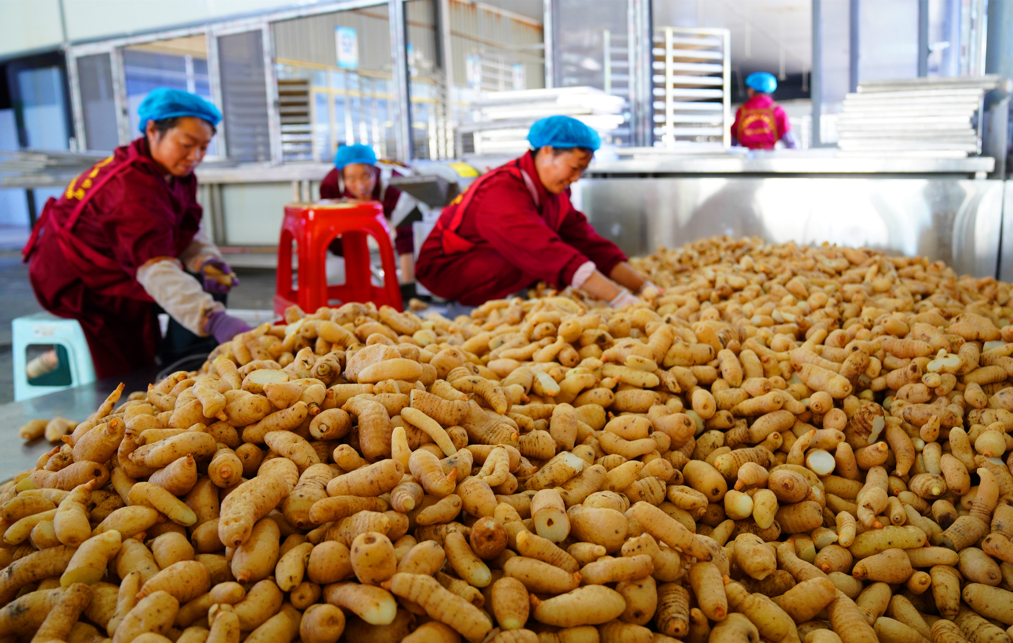 “我们年产值约1亿元,除自有种植基地采挖的外,每年还需收购5000至6000吨鲜天麻。”在云南国鹤(集团)昭通定风草生物科技有限公司,工人们正忙着鲜天麻切片、装烤盘、天麻蜜片装袋。公司总经理阮国芳介绍:“公司每天用工要60多人,普通工日薪100元起,技术工可达500元。这儿已成为当地群众家门口的务工车间。”