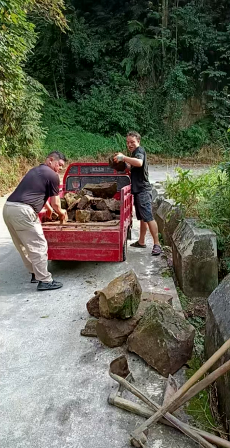 说干就干,村民们自发投入建设工作。你看那红三轮车上,周祖兵和李星源正合力搬着路灯部件,汗水顺着额角滴进尘土里;篮球场上,张发财带着大伙儿调试太阳能板,工具碰撞的声响里,透着股不服输的劲儿;就连路边的碎石,也被杨学忠和伙伴们一车车清运……投工名单上,4天、3天、2天的工日记录,是他们用双手在山路上刻下的“愚公志”。