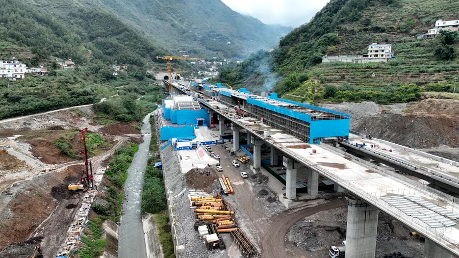 11月5日,渝昆高铁彝良北站配套设施工程建设正在有序推进。钱家河中桥、人行天桥、配套道路等重点项目同步施工,现场施工人员紧张作业,全力确保工程进度。