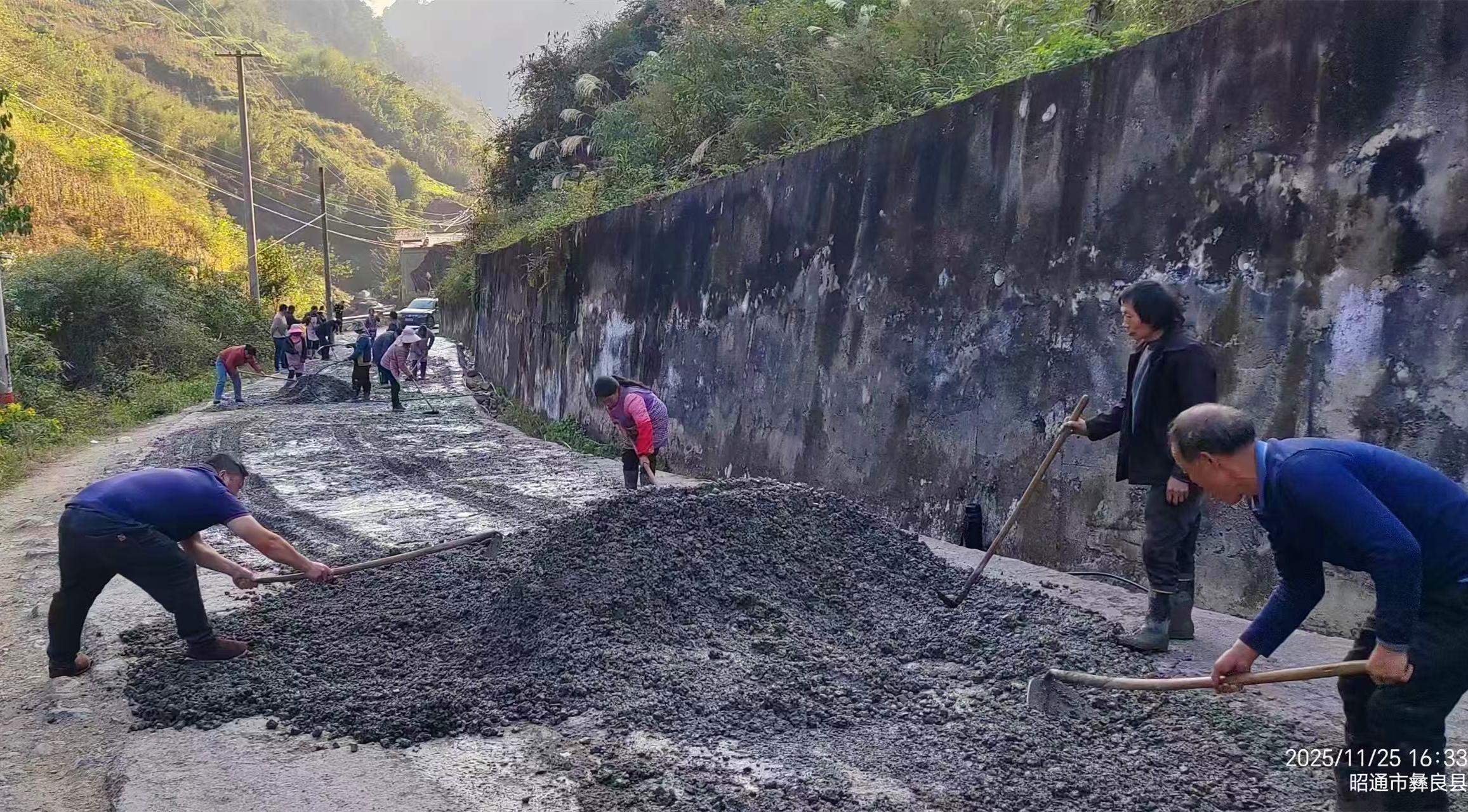 11月27日,尽管天气寒冷。但,彝良县洛旺乡云丰村云茶公路决坡路段却呈现出一派热火朝天的劳动景象。村民手持铁锹、锄头,与村干部、驻村工作队员一同搅拌混凝土、平整路基,用合力修补着影响群众出行与产业发展的“堵点路”。