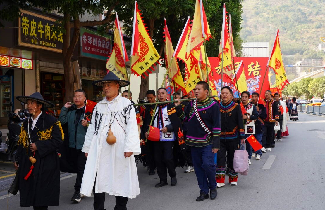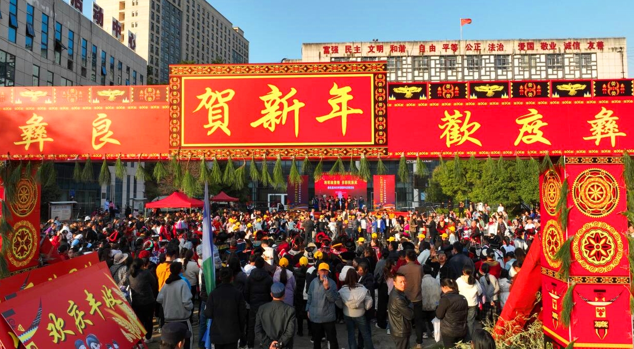 11月29日,彝历新年之际,彝良县彝族同胞身着绚丽的民族盛装,通过巡游、祭祖、文艺表演、跳篝火舞等最质朴的方式欢庆彝历新年的到来,传承千年民族情谊与文化根脉。