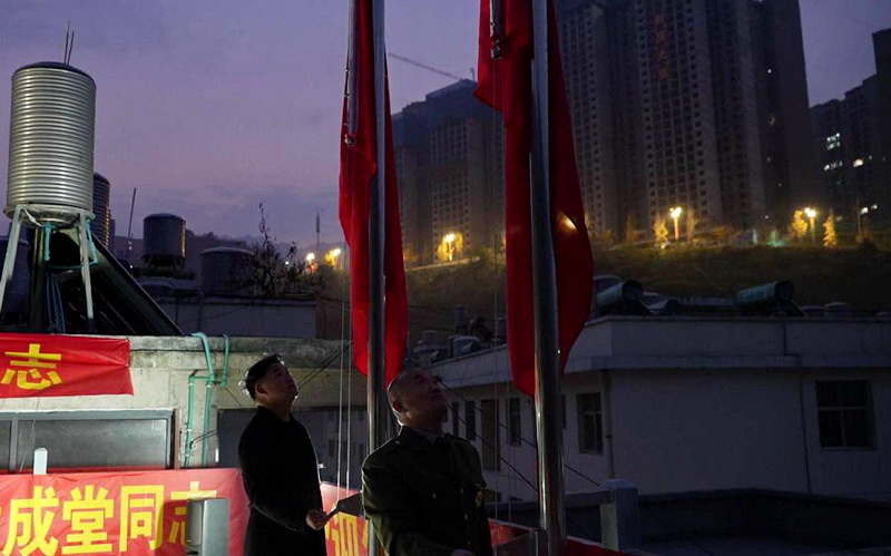 12月1日7时16分,在退役军人洪昆刚家的楼顶,一面崭新的五星红旗冉冉升起,退役军人洪昆刚与几位退役老英雄身着军装,神情肃穆地行注目礼,胸前的军功章在晨光中熠熠生辉。在这个退役军人家庭里,举行一场特殊的升旗仪式。