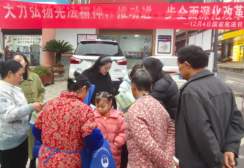 12月4日,在第十二个国家宪法日到来之际,彝良县牛街镇政府联合派出所、司法所等部门,围绕“学习贯彻习近平法治思想,推动宪法深入人心”主题开展国家宪法日集中宣传活动。