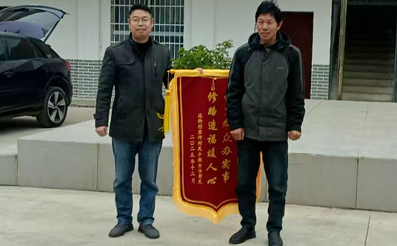 路通心畅,锦旗传递真情。2025年12月19日,村民覃天志将一面写着“情系群众办实事,修路造福暖人心”的锦旗送到驻村工作队手中时,眼眶泛红:“这条路修到了我们心坎上,锦旗上的话就是我们的心声!”这面锦旗是驻村工作队、挂联单位、角奎街道、村两委和人民群众团结协作的体现,更是一个开始、一个方向。下一步,拖脚村驻村工作队将继续聚焦群众需求,在产业扶持、环境整治等方面发力,携手村民共建宜居宜业和美乡村。