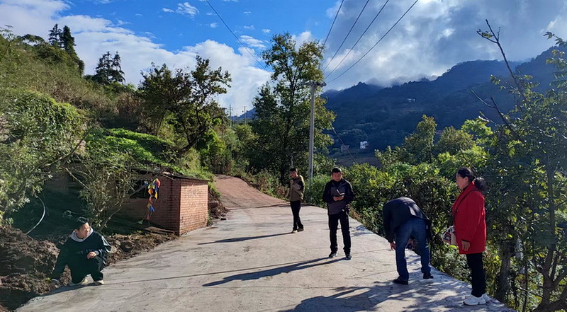 干群齐发力,旧路焕新颜。道路修缮过程中,呈现出干群同心、合力攻坚的动人场景。村民包龙凤不仅主动捐款1000元支持修路,还积极动员邻里参与义务劳动,用实际行动助力家乡建设;驻村工作队更是坚守一线,持续轮流在施工现场值守,与群众代表共同监督施工质量,严把道路硬化标准。经过大家的不懈努力,仅用一个月时间,这条全长1公里的道路便完成了全面升级:垮塌的偏坡得到加固防护,破损的路面变得平整宽敞,配套的排水沟渠畅通无阻,为村民出行铺就了安全便捷的“幸福路”。