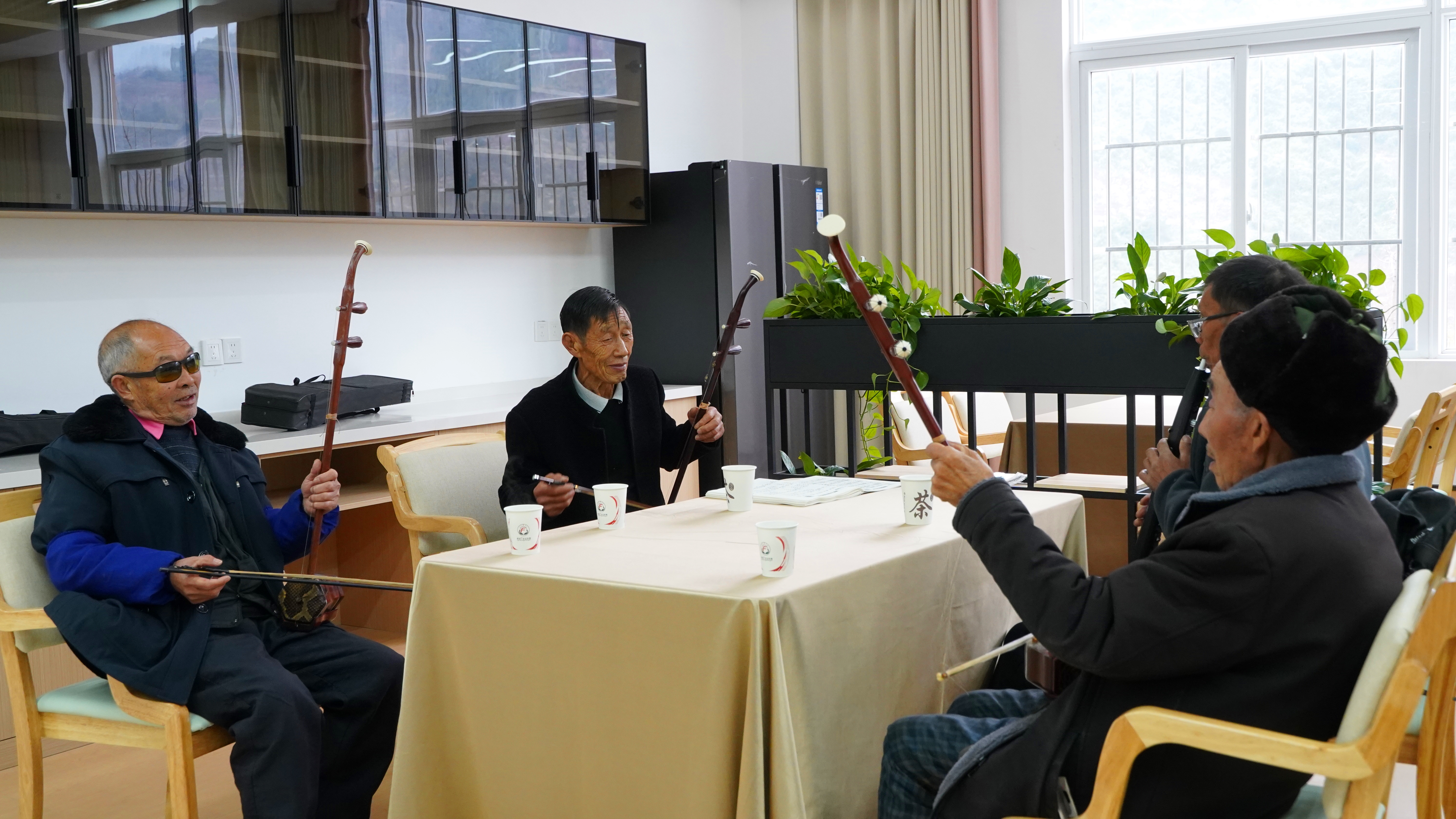 中午时分,83岁的蒋邦秀在幸福食堂用餐后,拿起快板为邻居表演。今年是她搬迁到安置区的第六年,当被问及是否想回老家时,她摇摇头说:“不回去了,回去都不习惯了。”在她看来,朝夕相处的邻居和贴心的社区干部都是家人,生活便利的安置区早已成为第二故乡。
